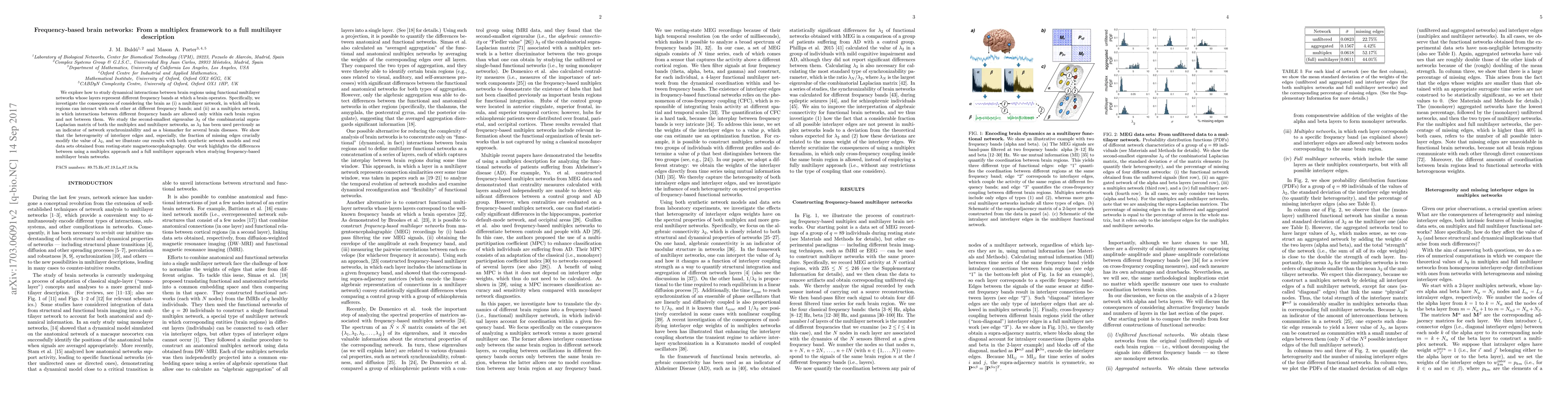 We explore how to study dynamical interactions between brain regions using functional multilayer networks whose layers represent the different frequency bands at which a brain operates. Specifically, we investigate the consequences of considering the brain as a multilayer network in which all brain regions can interact with each other at different frequency bands, instead of as a multiplex network, in which interactions between different frequency bands are only allowed within each brain region and not between them. We study the second smallest eigenvalue of the combinatorial supra-Laplacian matrix of the multilayer network in detail, and we thereby show that the heterogeneity of interlayer edges and, especially, the fraction of missing edges crucially modify the spectral properties of the multilayer network. We illustrate our results with both synthetic network models and real data sets obtained from resting state magnetoencephalography. Our work demonstrates an important issue in the construction of frequency-based multilayer brain networks.