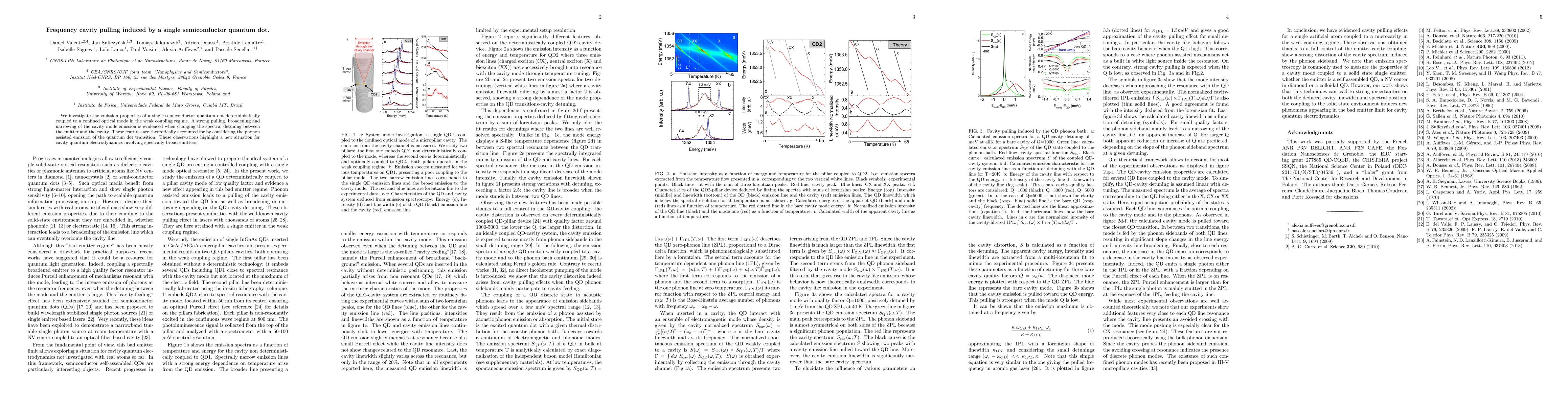 The paper presents a detailed theoretical and experimental analysis of cavity pulling induced by a single semiconductor quantum dot, attributing the phenomenon to phonon-assisted emission processes.