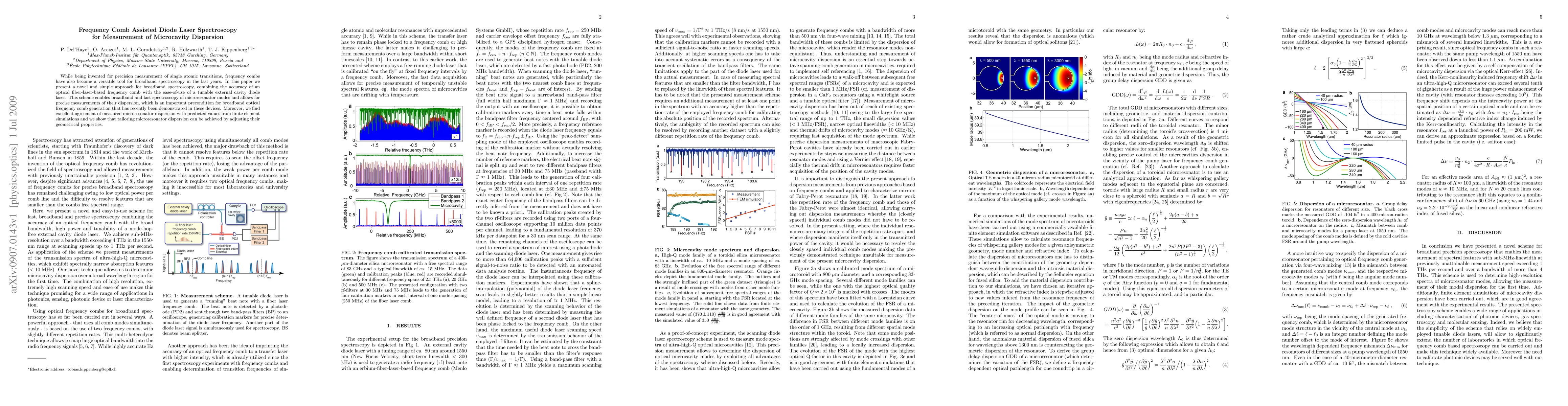 This paper proposes a novel method for broadband spectroscopy using a combination of optical fiber-laser-based frequency combs and tunable external cavity diode lasers, allowing precise measurement of microcavity dispersion. The approach aligns well with theoretical predictions and demonstrates that microcavity dispersion can be customized by modifying the microcavity's geometry.
