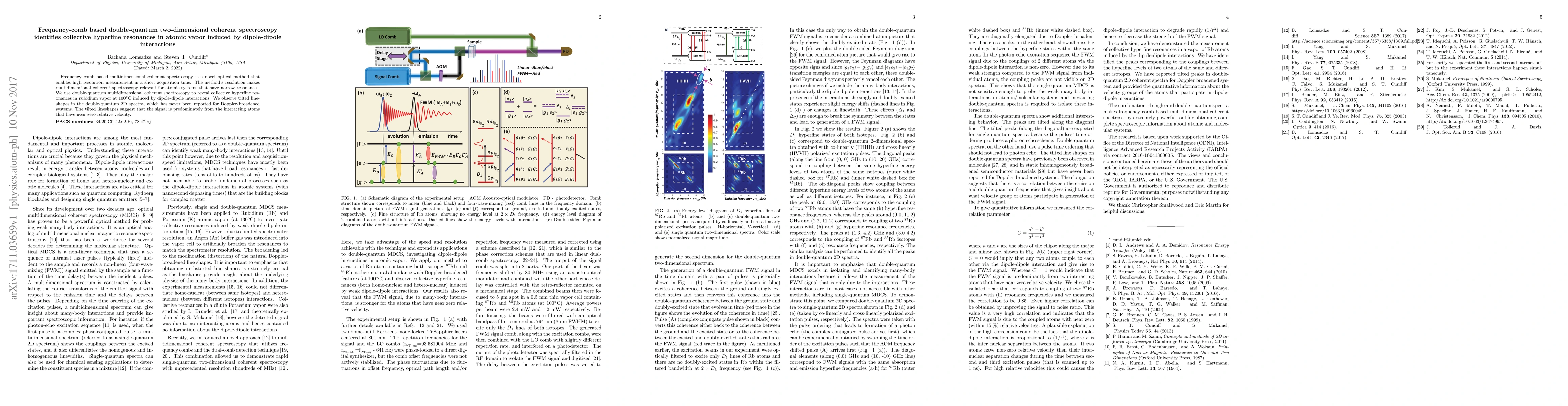 This paper introduces a frequency-comb based double-quantum 2D coherent spectroscopy method to identify collective hyperfine resonances in rubidium vapor. The technique reveals tilted lineshapes in spectra, indicating interactions from atoms with near zero relative velocity, a novel observation in Doppler-broadened systems.