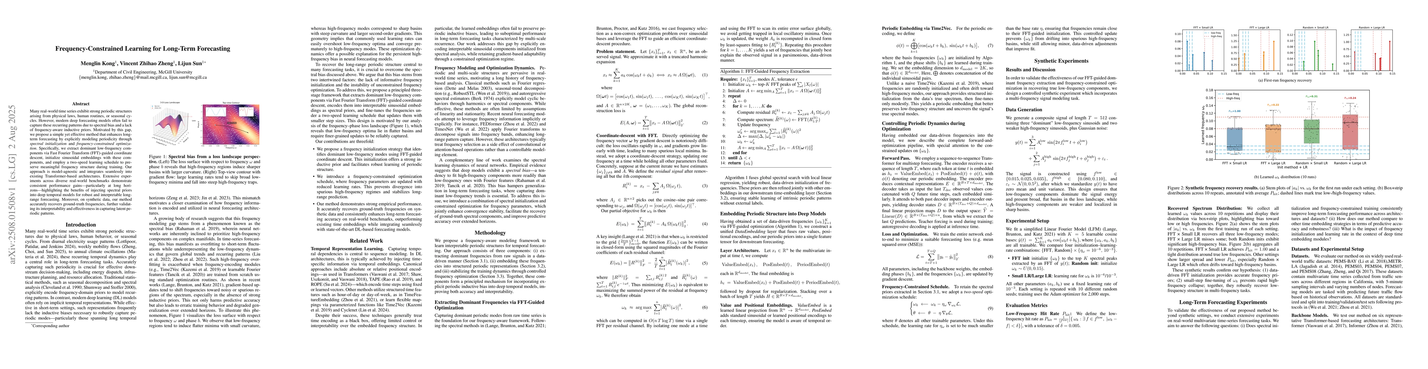 Many real-world time series exhibit strong periodic structures arising from physical laws, human routines, or seasonal cycles. However, modern deep forecasting models often fail to capture these recurring patterns due to spectral bias and a lack of frequency-aware inductive priors. Motivated by this gap, we propose a simple yet effective method that enhances long-term forecasting by explicitly modeling periodicity through spectral initialization and frequency-constrained optimization. Specifically, we extract dominant low-frequency components via Fast Fourier Transform (FFT)-guided coordinate descent, initialize sinusoidal embeddings with these components, and employ a two-speed learning schedule to preserve meaningful frequency structure during training. Our approach is model-agnostic and integrates seamlessly into existing Transformer-based architectures. Extensive experiments across diverse real-world benchmarks demonstrate consistent performance gains--particularly at long horizons--highlighting the benefits of injecting spectral priors into deep temporal models for robust and interpretable long-range forecasting. Moreover, on synthetic data, our method accurately recovers ground-truth frequencies, further validating its interpretability and effectiveness in capturing latent periodic patterns.