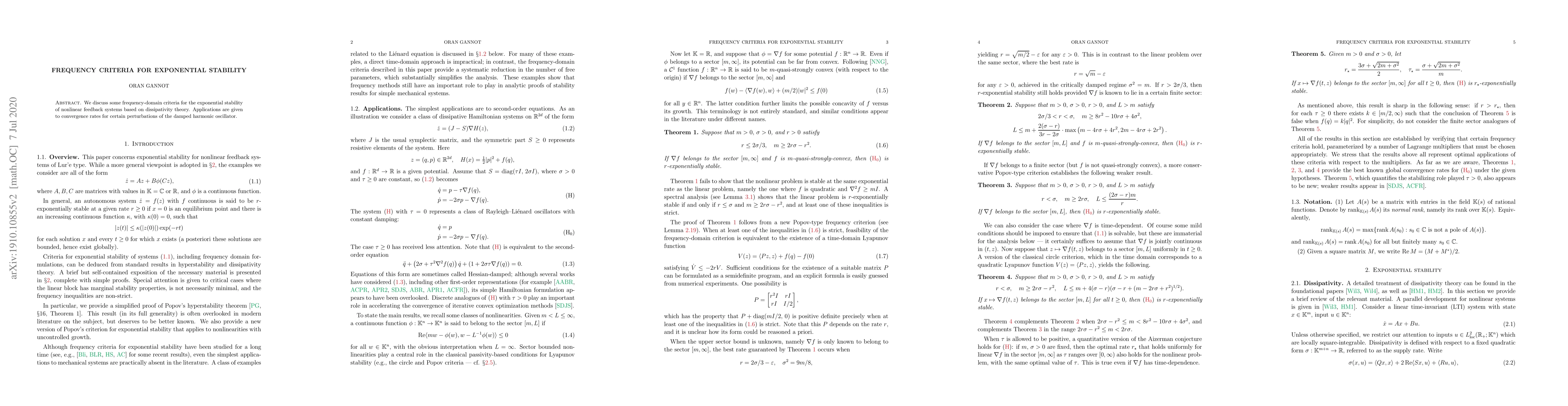 We discuss some frequency-domain criteria for the exponential stability of nonlinear feedback systems based on dissipativity theory. Applications are given to convergence rates for certain perturbations of the damped harmonic oscillator.