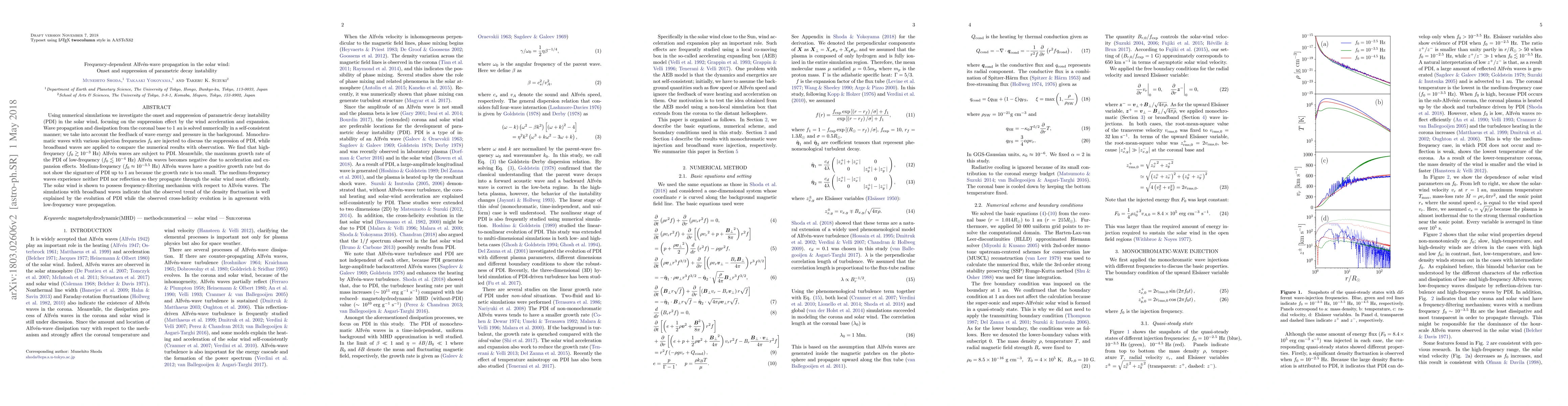 Using numerical simulations, we investigate the onset and suppression of parametric decay instability (PDI) in the solar wind, focusing on the suppression effect by the wind acceleration and expansion. We also discuss the role of PDI in generating the density fluctuation in the solar wind and the cross-helicity evolution up to $1 {\rm \ au}$. Numerical simulations from the coronal base to 1 au are conducted in a self-consistent manner; we take into account the feedback of wave energy and pressure in the background. Monochromatic waves with various injection frequencies $f_0$ are injected to discuss the suppression of PDI, while broadband waves are applied to compare the numerical results with observation. We find, via the simulations with monochromatic waves, that high-frequency ($f_0 \gtrsim10^{-3} {\rm \ Hz}$) Alfv\'en waves are subject to PDI. Meanwhile, the maximum growth rate of the PDI of low-frequency ($f_0 \lesssim10^{-4} {\rm \ Hz}$) Alfv\'en waves becomes negative due to acceleration and expansion effects. Medium-frequency ($f_0 \approx 10^{-3.5} {\rm \ Hz}$) Alfv\'en waves have a positive growth rate but do not show the signature of PDI up to 1 au because the growth rate is too small. The medium-frequency waves experience neither PDI nor reflection so they propagate through the solar wind most efficiently. This is called the frequency-filtering mechanism of the solar wind. The simulations with broadband waves indicate that the observed trend of the density fluctuation is well explained by the evolution of PDI while the observed cross-helicity evolution is in agreement with low-frequency wave propagation.