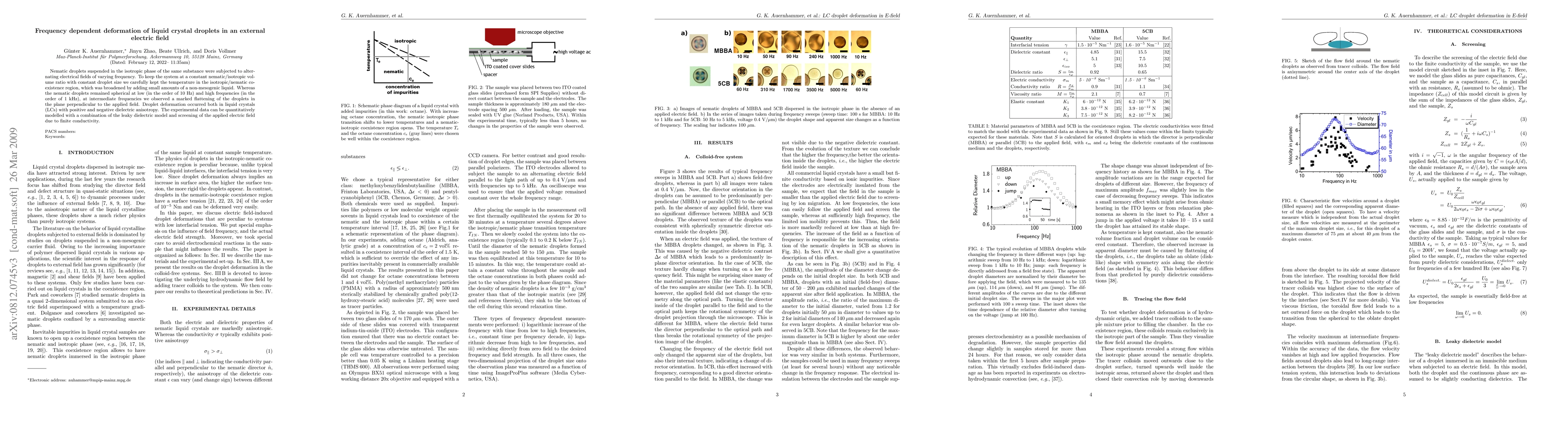 This paper investigates the deformation of nematic liquid crystal droplets under varying frequencies of an external electric field, finding marked flattening at intermediate frequencies. The study combines the leaky dielectric model with field screening effects to quantitatively explain the observed deformations.