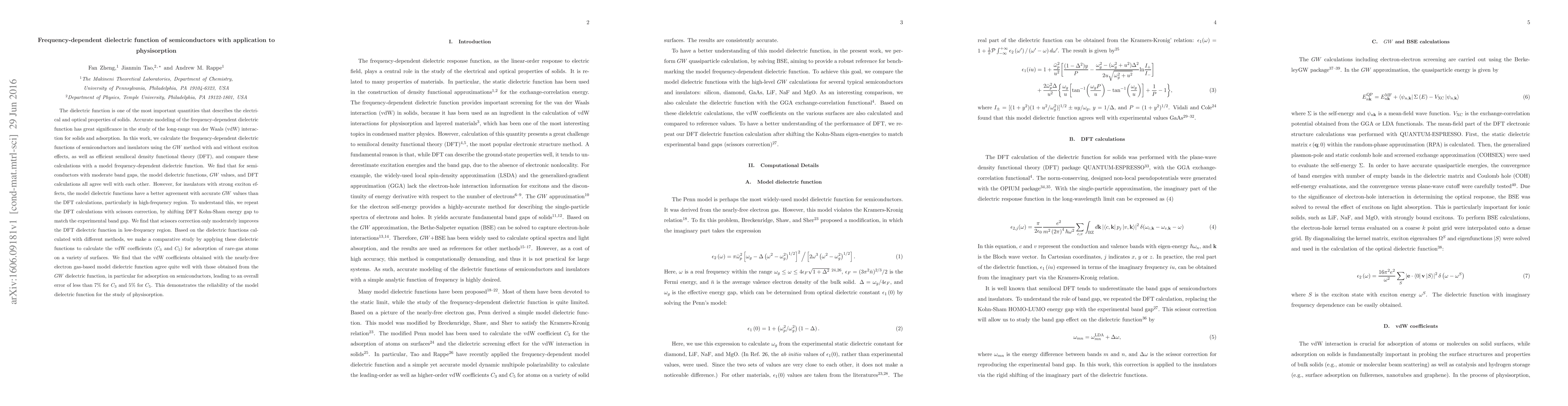 The dielectric function is one of the most important quantities that describes the electrical and optical properties of solids. Accurate modeling of the frequency-dependent dielectric function has great significance in the study of the long-range van der Waals (vdW) interaction for solids and adsorption. In this work, we calculate the frequency-dependent dielectric functions of semiconductors and insulators using the $GW$ method with and without exciton effects, as well as efficient semilocal density functional theory (DFT), and compare these calculations with a model frequency-dependent dielectric function. We find that for semiconductors with moderate band gaps, the model dielectric functions, $GW$ values, and DFT calculations all agree well with each other. However, for insulators with strong exciton effects, the model dielectric functions have a better agreement with accurate $GW$ values than the DFT calculations, particularly in high-frequency region. To understand this, we repeat the DFT calculations with scissors correction, by shifting DFT Kohn-Sham energy gap to match the experimental band gap. We find that scissors correction only moderately improves the DFT dielectric function in low-frequency region. Based on the dielectric functions calculated with different methods, we make a comparative study by applying these dielectric functions to calculate the vdW coefficients ($C_3$ and $C_5$) for adsorption of rare-gas atoms on a variety of surfaces. We find that the vdW coefficients obtained with the nearly-free electron gas-based model dielectric function agree quite well with those obtained from the $GW$ dielectric function, in particular for adsorption on semiconductors, leading to an overall error of less than 7% for $C_3$ and 5% for $C_5$. This demonstrates the reliability of the model dielectric function for the study of physisorption.