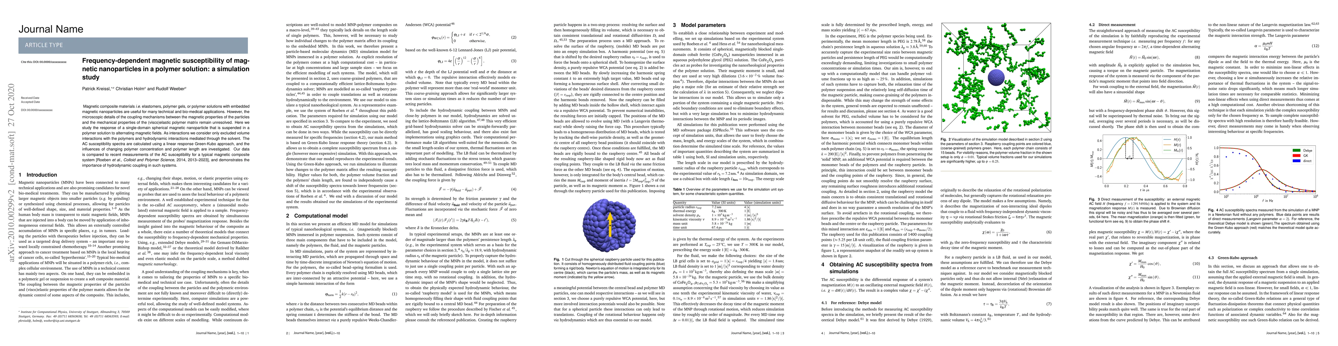 This study investigates the frequency-dependent magnetic susceptibility of magnetic nanoparticles in a polymer solution using simulation, focusing on the effects of polymer concentration and length on the AC susceptibility spectra. The findings highlight the significance of hydrodynamic interactions in the coupling mechanisms between magnetic nanoparticles and the polymer matrix.