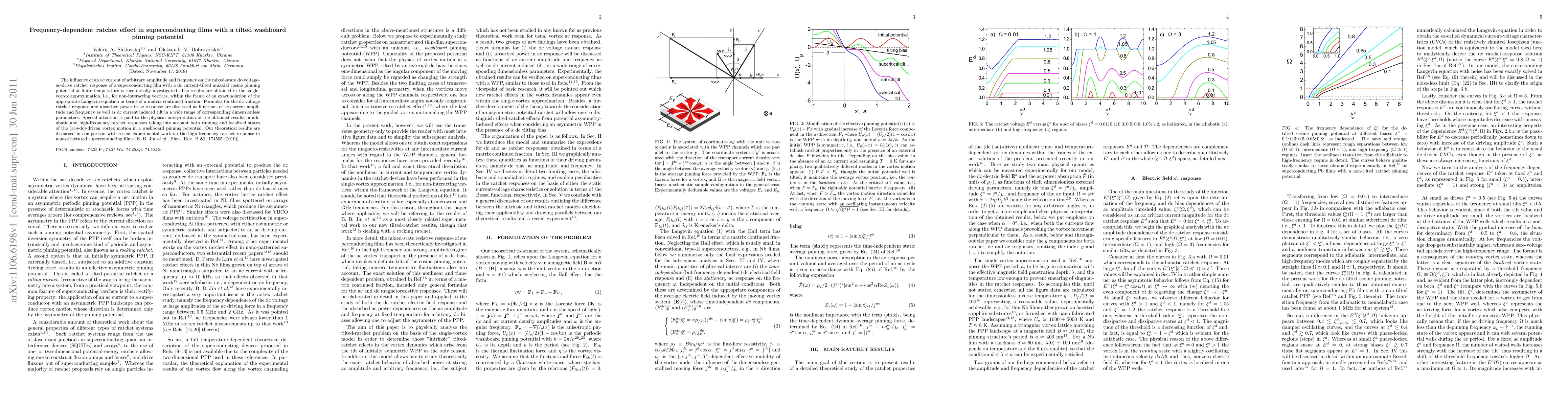 This paper investigates the frequency-dependent ratchet effect in superconducting films with a tilted washboard pinning potential, deriving formulas for dc voltage and absorbed power as functions of ac current and frequency. The theoretical results are compared with experimental findings on high-frequency ratchet responses in nanostructured superconducting films.