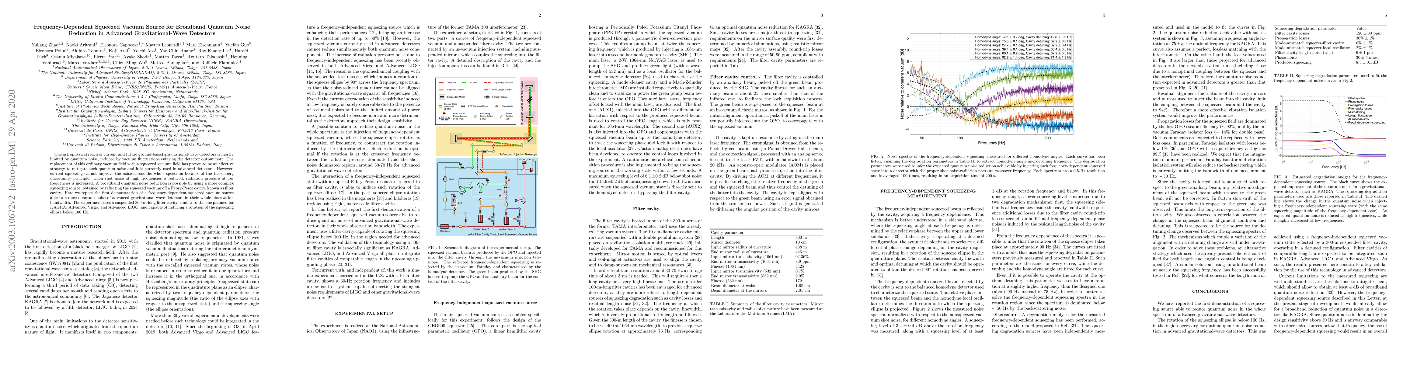 This paper presents a frequency-dependent squeezed vacuum source using a filter cavity to mitigate quantum noise across the entire bandwidth of advanced gravitational-wave detectors, overcoming limitations imposed by the Heisenberg uncertainty principle. The experimental setup demonstrates effective noise reduction below 100 Hz.