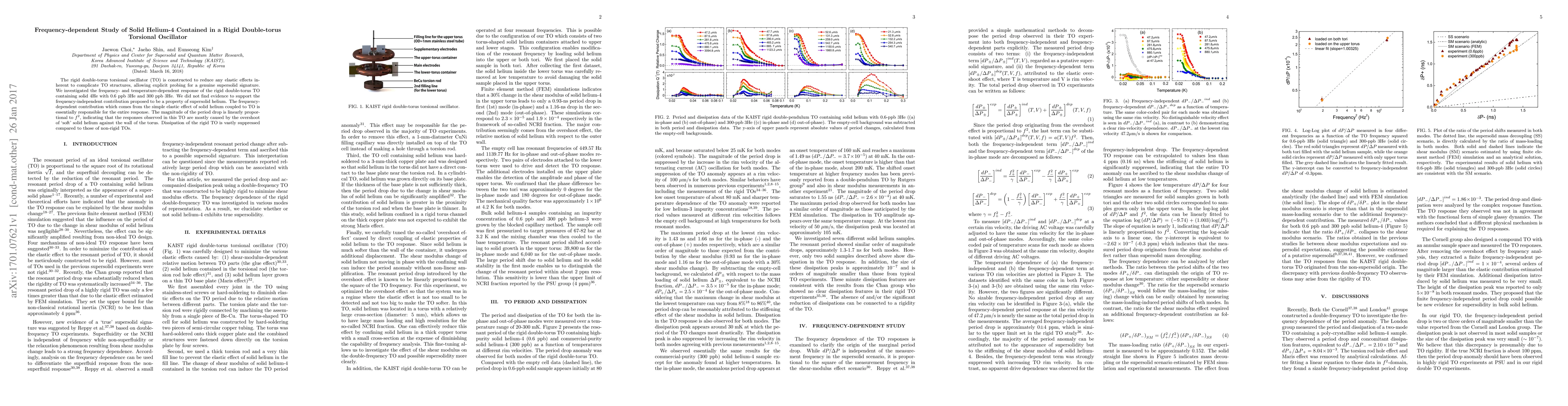 This study investigates the frequency- and temperature-dependent response of a rigid double-torus torsional oscillator containing solid helium-4, finding no evidence for supersolid properties. The observed frequency-dependent response is attributed to the elastic effects of solid helium rather than a supersolid signature.