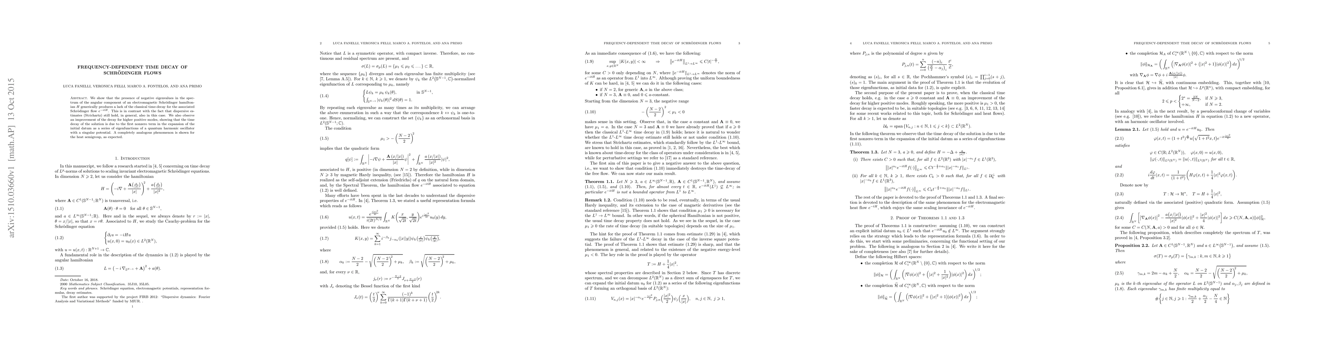 We show that the presence of negative eigenvalues in the spectrum of the angular component of an electromagnetic Schr\"odinger hamiltonian $H$ generically produces a lack of the classical time-decay for the associated Schr\"odinger flow $e^{-itH}$. This is in contrast with the fact that dispersive estimates (Strichartz) still hold, in general, also in this case. We also observe an improvement of the decay for higher positive modes, showing that the time decay of the solution is due to the first nonzero term in the expansion of the initial datum as a series of eigenfunctions of a quantum harmonic oscillator with a singular potential. A completely analogous phenomenon is shown for the heat semigroup, as expected.