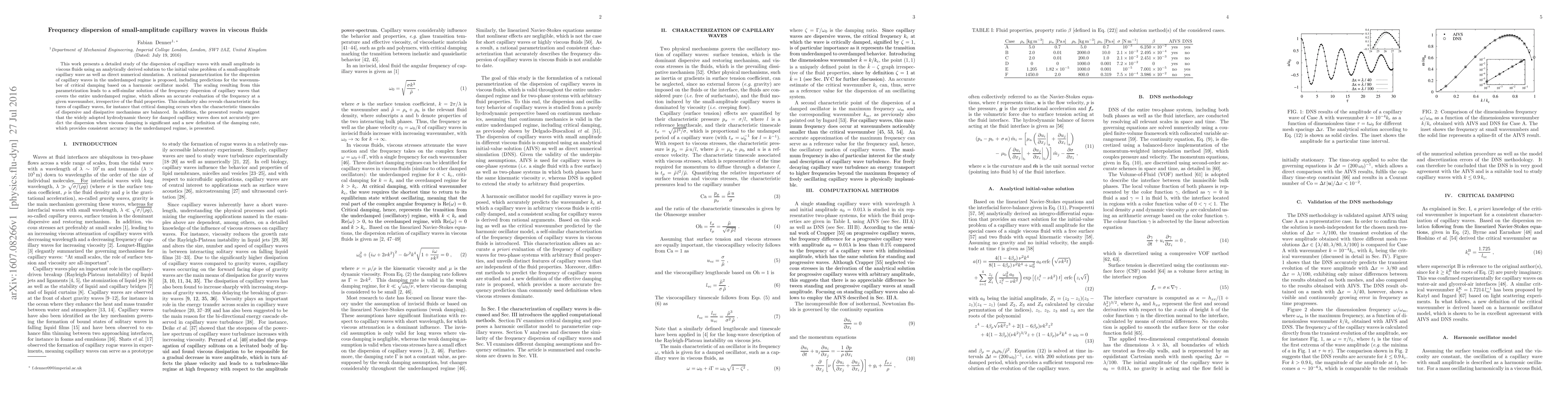 This study analytically and numerically investigates the dispersion of small-amplitude capillary waves in viscous fluids, proposing a rational parametrization that accurately predicts frequency dispersion across the underdamped regime, and suggesting a new definition of the damping rate for better accuracy when viscous damping is significant.