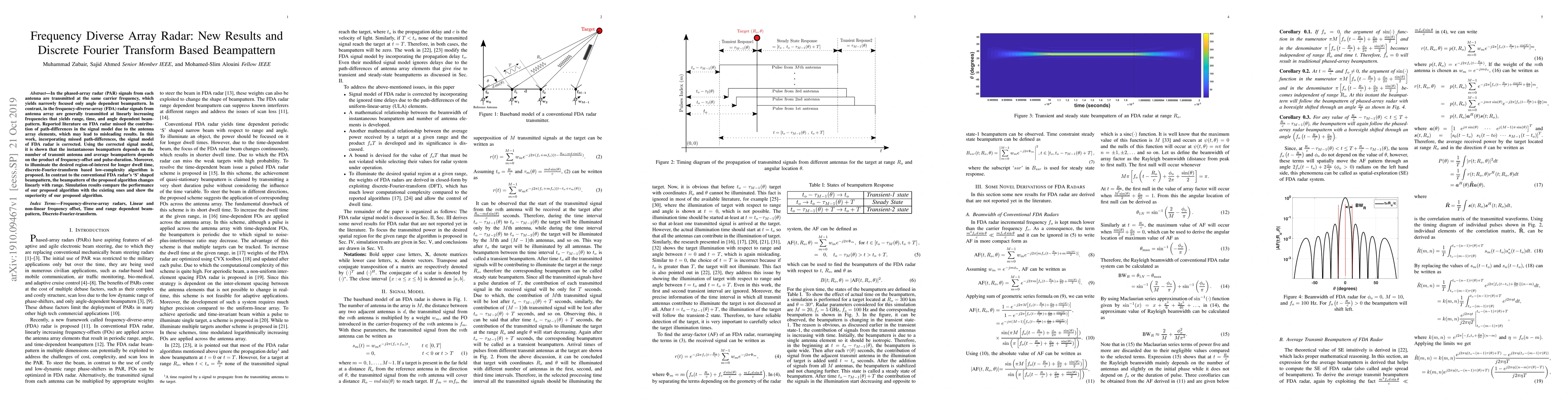 This paper corrects the signal model for frequency-diverse-array radar by incorporating missed path-differences, showing that beampatterns depend on antenna count and frequency-offset. It proposes a low-complexity, discrete Fourier transform-based algorithm for improved beampattern linearity and longer dwell time, outperforming existing methods.