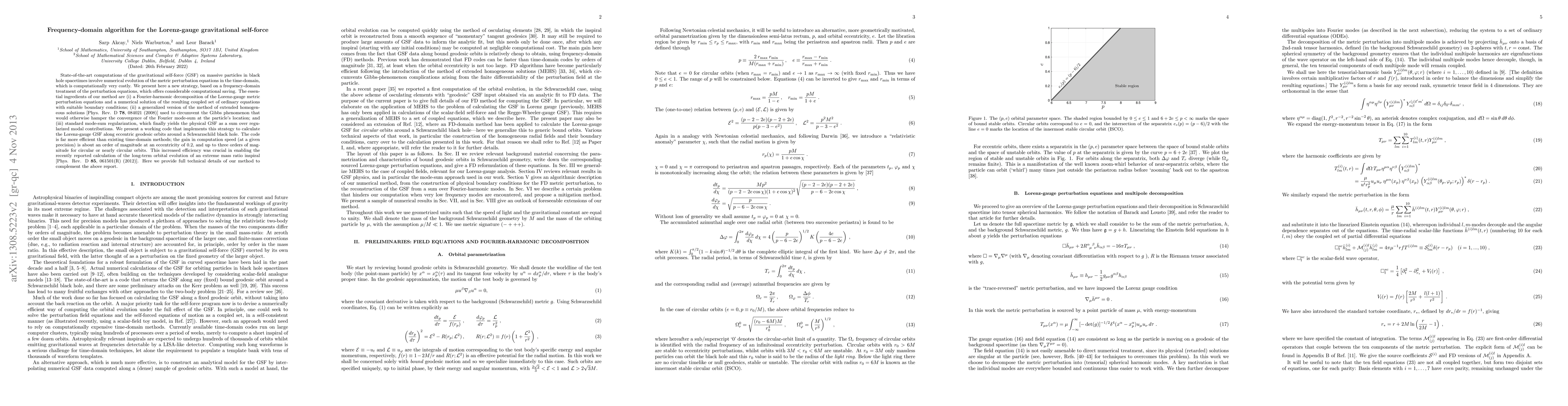 State-of-the-art computations of the gravitational self-force (GSF) on massive particles in black hole spacetimes involve numerical evolution of the metric perturbation equations in the time-domain, which is computationally very costly. We present here a new strategy, based on a frequency-domain treatment of the perturbation equations, which offers considerable computational saving. The essential ingredients of our method are (i) a Fourier-harmonic decomposition of the Lorenz-gauge metric perturbation equations and a numerical solution of the resulting coupled set of ordinary equations with suitable boundary conditions; (ii) a generalized version of the method of extended homogeneous solutions [Phys. Rev. D {\bf 78}, 084021 (2008)] used to circumvent the Gibbs phenomenon that would otherwise hamper the convergence of the Fourier mode-sum at the particle's location; and (iii) standard mode-sum regularization, which finally yields the physical GSF as a sum over regularized modal contributions. We present a working code that implements this strategy to calculate the Lorenz-gauge GSF along eccentric geodesic orbits around a Schwarzschild black hole. The code is far more efficient than existing time-domain methods; the gain in computation speed (at a given precision) is about an order of magnitude at an eccentricity of 0.2, and up to three orders of magnitude for circular or nearly circular orbits. This increased efficiency was crucial in enabling the recently reported calculation of the long-term orbital evolution of an extreme mass ratio inspiral [Phys. Rev. D {\bf 85}, 061501(R) (2012)]. Here we provide full technical details of our method to complement the above report.
