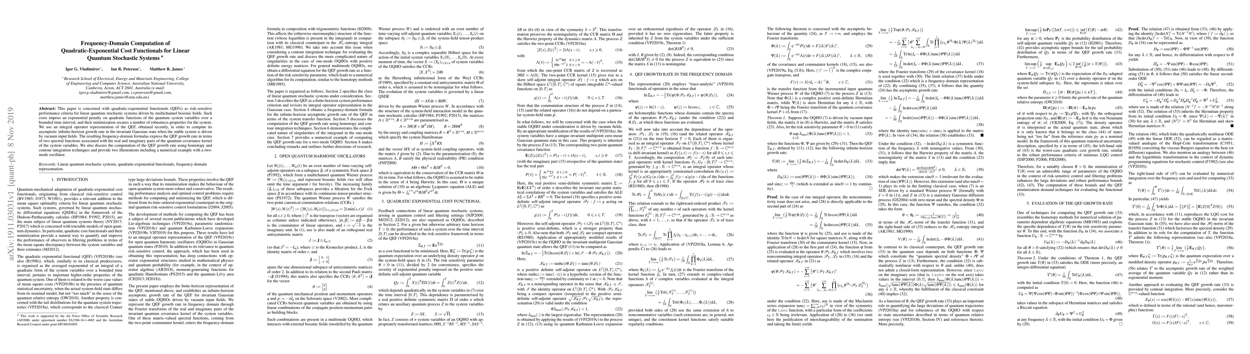 This paper computes the asymptotic growth rate of quadratic-exponential functionals for linear quantum stochastic systems driven by bosonic fields, using frequency-domain formulas based on spectral functions of the quantum covariance kernel. It also explores homotopy and contour integration techniques for practical computation, illustrated with a numerical example of a two-mode oscillator.