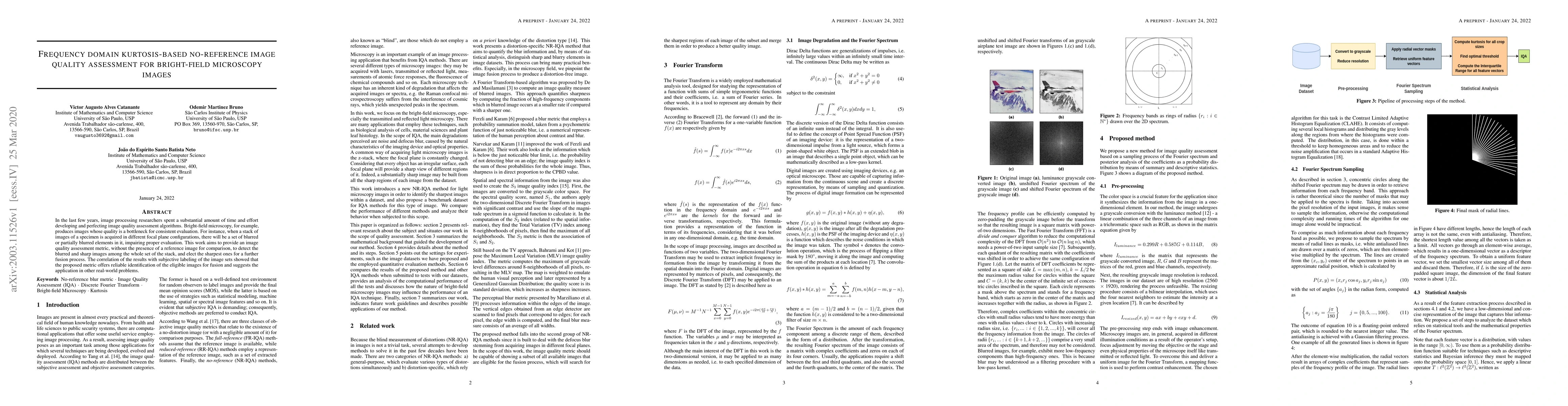 This research develops a no-reference image quality assessment metric to evaluate bright-field microscopy images, identifying blurred and sharp images for fusion. The proposed metric offers reliable identification of eligible images with good correlation to subjective labeling results.