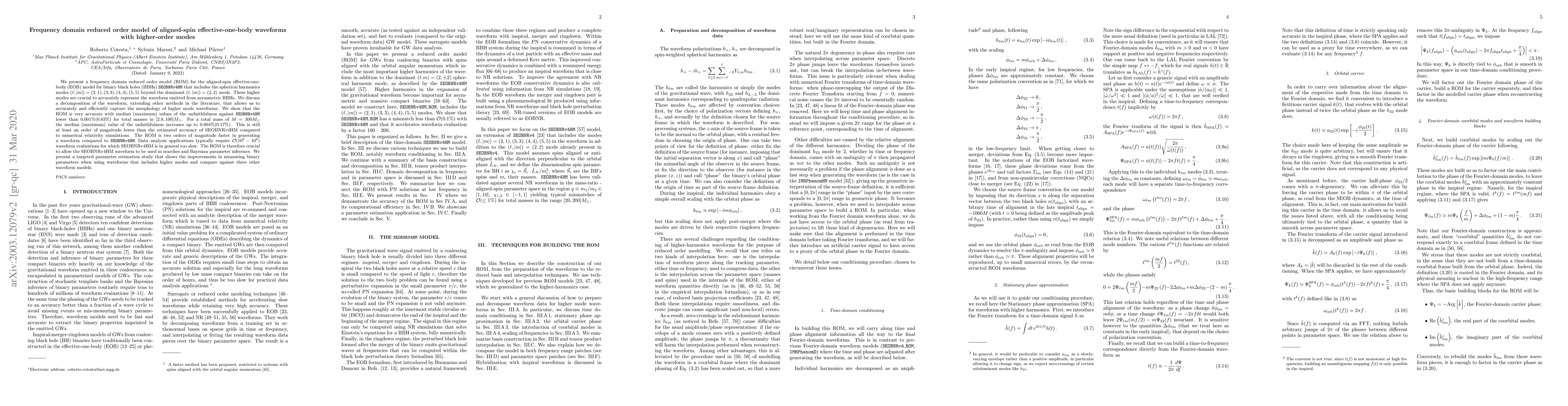 This paper introduces a frequency domain reduced order model (ROM) for the aligned-spin effective-one-body model of binary black holes, including higher-order modes beyond the dominant $(2,2)$ mode. The ROM accurately captures the morphology of higher mode waveforms and is significantly faster than the original model, making it essential for data analysis applications requiring large numbers of waveform evaluations.
