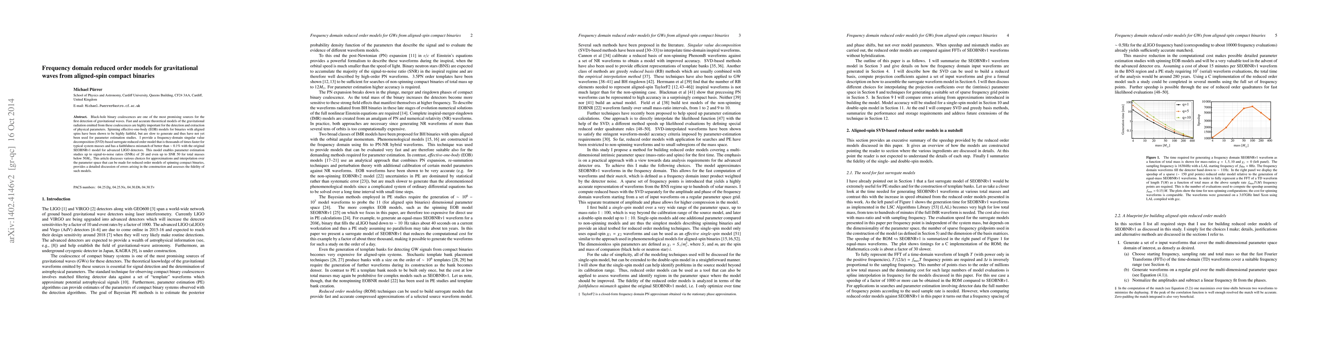 This paper introduces a frequency-domain reduced order model based on singular value decomposition for gravitational waves from aligned-spin black hole binaries, offering a significant speedup while maintaining a high fidelity of less than 0.1% compared to the original SEOBNRv1 model, enabling parameter estimation studies for advanced LIGO detectors.