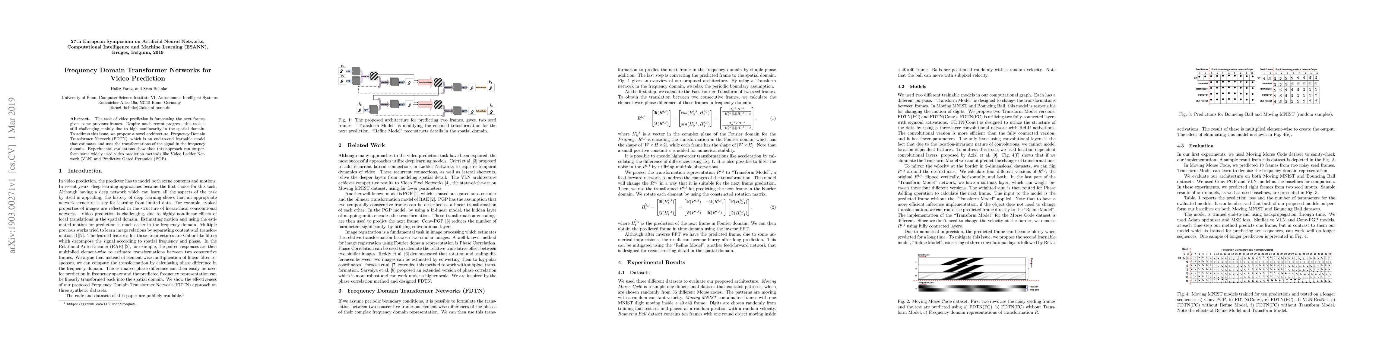 The task of video prediction is forecasting the next frames given some previous frames. Despite much recent progress, this task is still challenging mainly due to high nonlinearity in the spatial domain. To address this issue, we propose a novel architecture, Frequency Domain Transformer Network (FDTN), which is an end-to-end learnable model that estimates and uses the transformations of the signal in the frequency domain. Experimental evaluations show that this approach can outperform some widely used video prediction methods like Video Ladder Network (VLN) and Predictive Gated Pyramids (PGP).