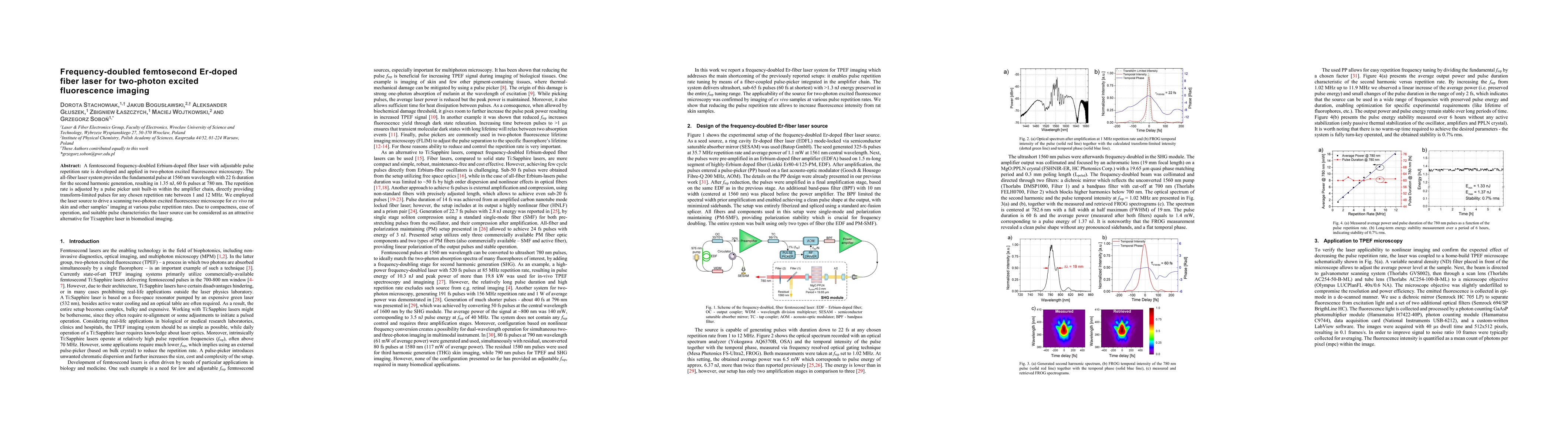 A femtosecond frequency-doubled Er-doped fiber laser is developed for two-photon excited fluorescence microscopy, providing compact, adjustable pulses suitable for biomedical imaging. The system offers transform-limited pulses at various repetition rates, demonstrating potential as an alternative to Ti:sapphire lasers.