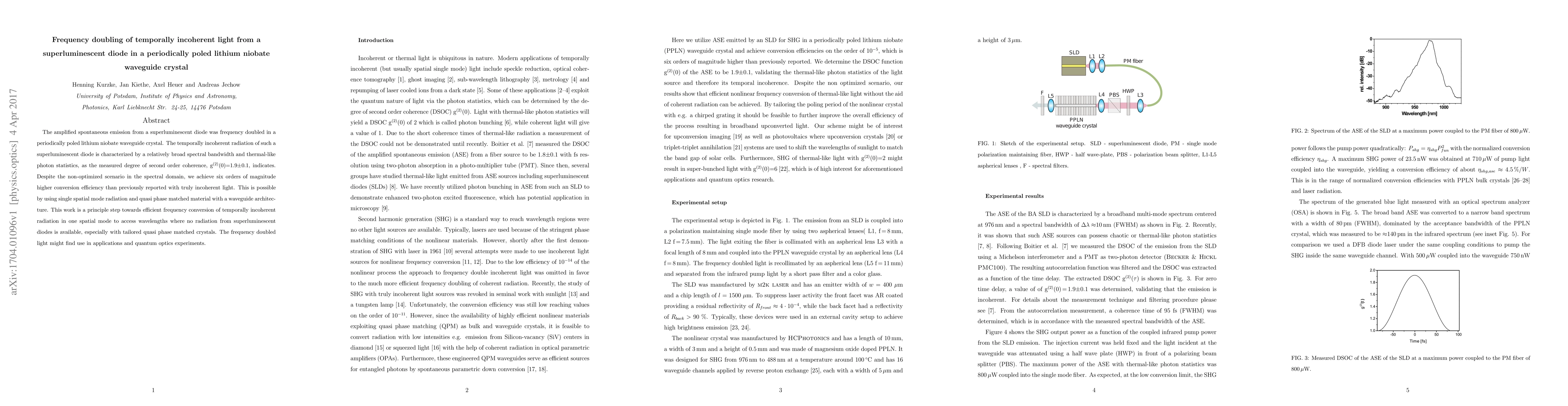 This paper reports on the frequency doubling of temporally incoherent light from a superluminescent diode in a periodically poled lithium niobate waveguide, achieving six orders of magnitude higher conversion efficiency than previously reported. The method uses single spatial mode radiation and quasi phase matched material, paving the way for efficient frequency conversion in quantum optics and applications.