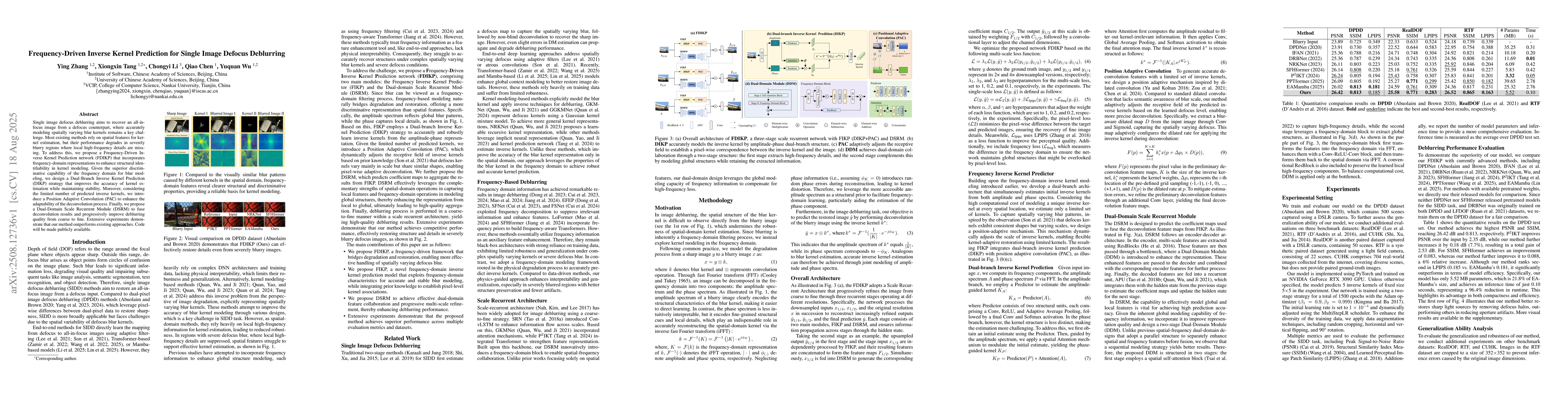 Single image defocus deblurring aims to recover an all-in-focus image from a defocus counterpart, where accurately modeling spatially varying blur kernels remains a key challenge. Most existing methods rely on spatial features for kernel estimation, but their performance degrades in severely blurry regions where local high-frequency details are missing. To address this, we propose a Frequency-Driven Inverse Kernel Prediction network (FDIKP) that incorporates frequency-domain representations to enhance structural identifiability in kernel modeling. Given the superior discriminative capability of the frequency domain for blur modeling, we design a Dual-Branch Inverse Kernel Prediction (DIKP) strategy that improves the accuracy of kernel estimation while maintaining stability. Moreover, considering the limited number of predicted inverse kernels, we introduce a Position Adaptive Convolution (PAC) to enhance the adaptability of the deconvolution process. Finally, we propose a Dual-Domain Scale Recurrent Module (DSRM) to fuse deconvolution results and progressively improve deblurring quality from coarse to fine. Extensive experiments demonstrate that our method outperforms existing approaches. Code will be made publicly available.