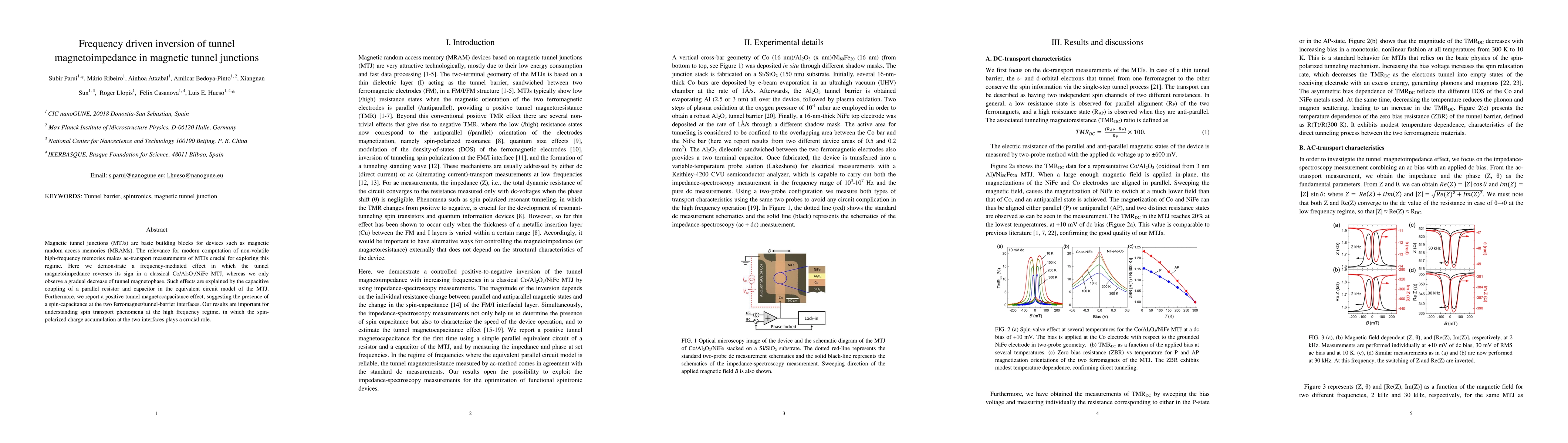 Magnetic tunnel junctions (MTJs) are basic building blocks for devices such as magnetic random access memories (MRAMs). The relevance for modern computation of non-volatile high-frequency memories makes ac-transport measurements of MTJs crucial for exploring this regime. Here we demonstrate a frequency-mediated effect in which the tunnel magnetoimpedance reverses its sign in a classical Co/Al{_2}O{_3}/NiFe MTJ, whereas we only observe a gradual decrease of tunnel magnetophase. Such effects are explained by the capacitive coupling of a parallel resistor and capacitor in the equivalent circuit model of the MTJ. Furthermore, we report a positive tunnel magnetocapacitance effect, suggesting the presence of a spin-capacitance at the two ferromagnet/tunnel-barrier interfaces. Our results are important for understanding spin transport phenomena at the high frequency regime, in which the spin-polarized charge accumulation at the two interfaces plays a crucial role.