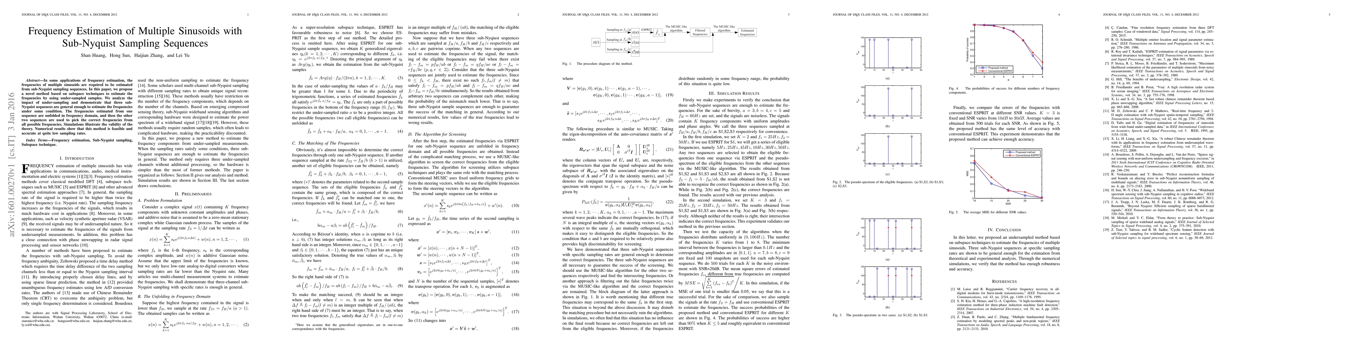 This paper proposes a novel subspace technique for estimating frequencies of multiple sinusoids from sub-Nyquist sampling sequences. It demonstrates that three under-sampled sequences can generally estimate frequencies under certain conditions, with simulations showing the method's feasibility and accuracy at low sampling rates.