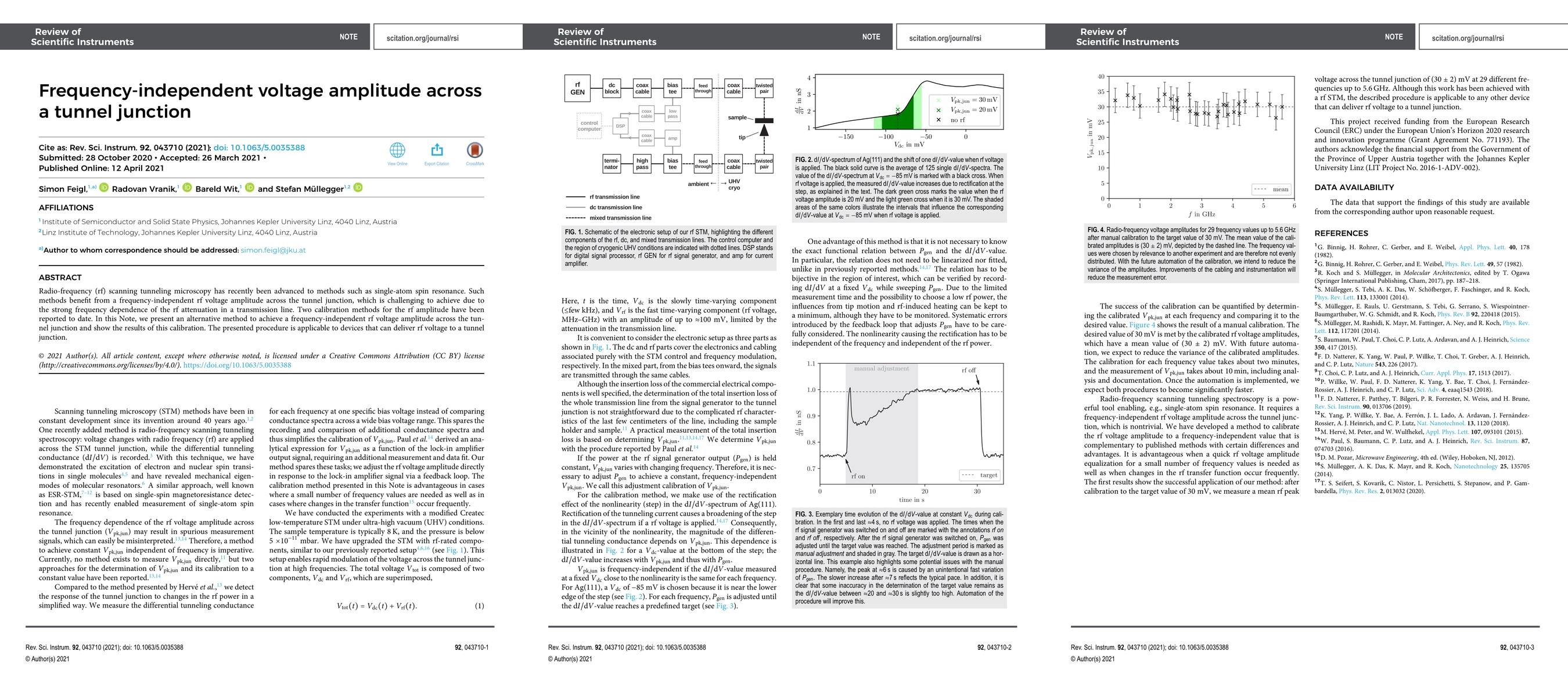 Researchers developed a method to achieve frequency-independent rf voltage amplitude across tunnel junctions, improving scanning tunneling microscopy techniques.
