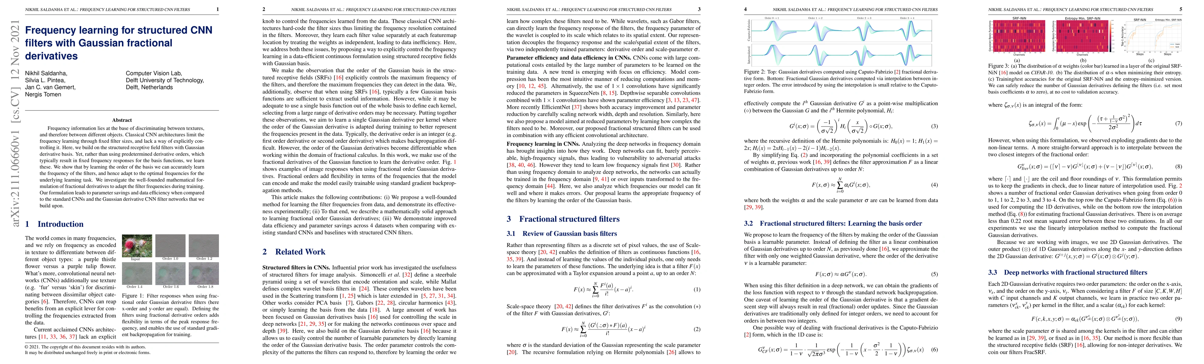 Researchers developed a method to learn the frequency of CNN filters using Gaussian fractional derivatives, allowing for more efficient adaptation to tasks that require different frequencies. This approach adapts traditional CNNs and filter networks to be more data-efficient and flexible.