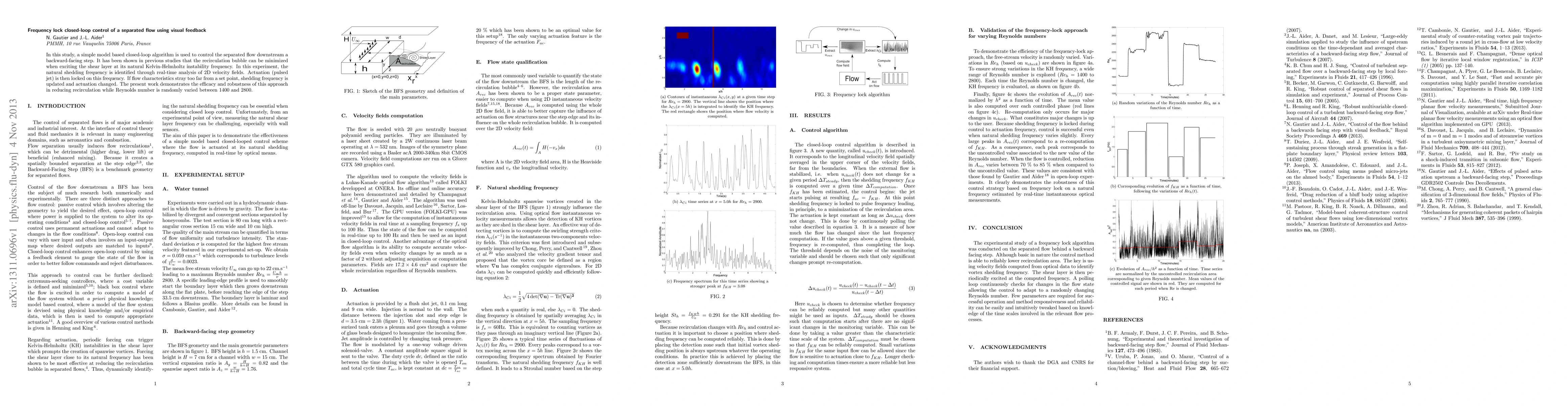 This study employs a frequency lock closed-loop control algorithm using visual feedback to minimize the recirculation bubble downstream of a backward-facing step. The method successfully reduces recirculation by exciting the shear layer at its natural shedding frequency, demonstrating efficacy and robustness across varying Reynolds numbers.