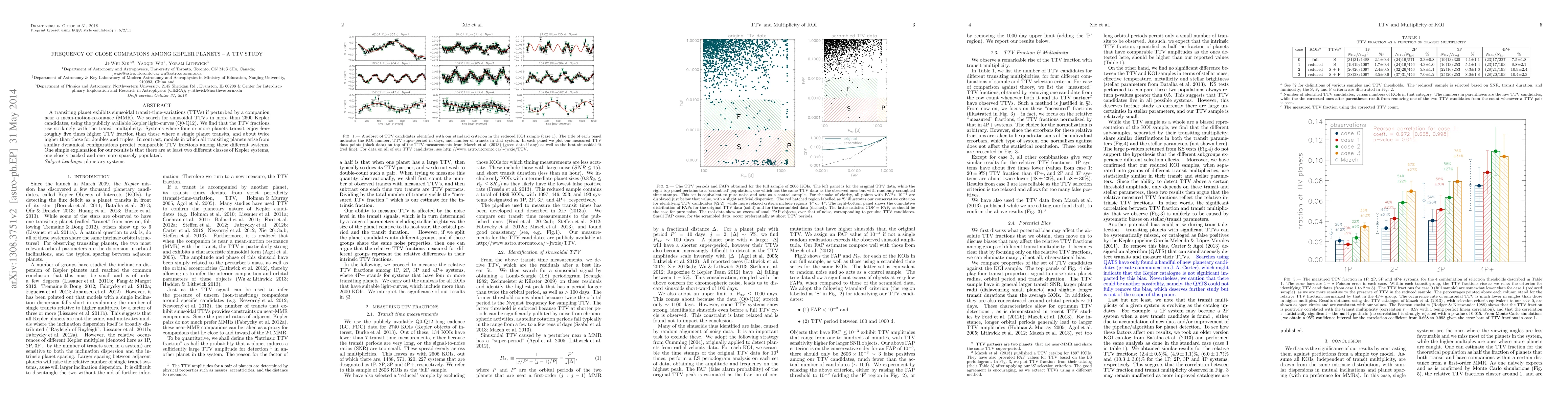 This paper investigates the frequency of close companions among Kepler planets through transit-time-variations (TTVs), revealing a significantly higher TTV fraction in systems with four or more transiting planets compared to those with fewer. The findings suggest the existence of two distinct classes of Kepler systems: closely packed and more sparsely populated.