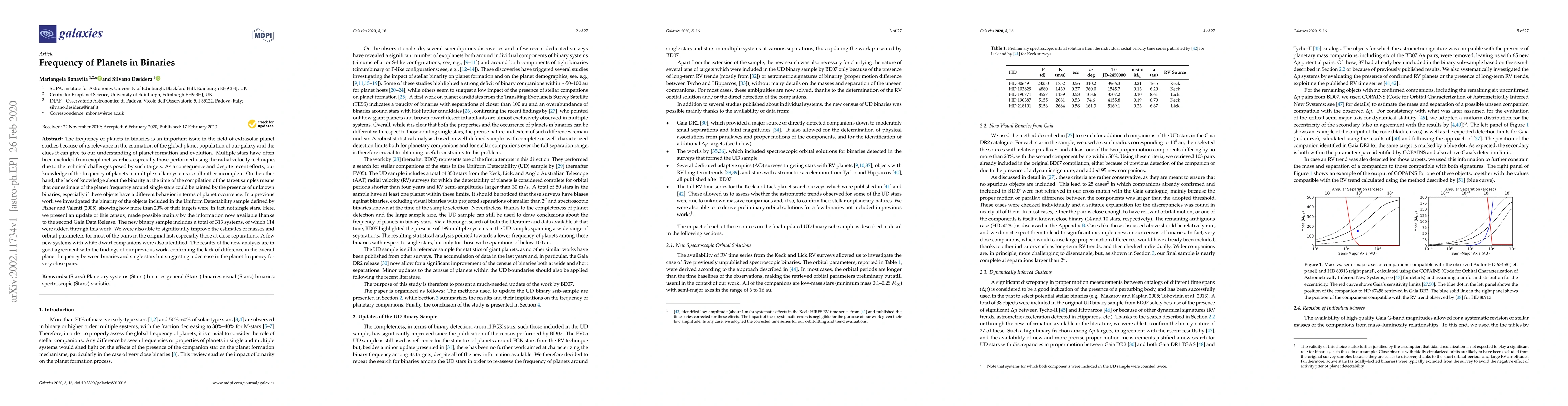 The frequency of planets in binaries is an important issue in the field of extrasolar planet studies because of its relevance in the estimation of the global planet population of our galaxy and the clues it can give to our understanding of planet formation and evolution. Multiple stars have often been excluded from exoplanet searches, especially those performed using the radial velocity technique, due to the technical challenges posed by such targets. As a consequence and despite recent efforts, our knowledge of the frequency of planets in multiple stellar systems is still rather incomplete. On the other hand, the lack of knowledge about the binarity at the time of the compilation of the target samples means that our estimate of the planet frequency around single stars could be tainted by the presence of unknown binaries, especially if these objects have a different behavior in terms of planet occurrence. In a previous work we investigated the binarity of the objects included in the Uniform Detectability sample defined by Fisher and Valenti (2005), showing how more than 20% of their targets were, in fact, not single stars. Here, we present an update of this census, made possible mainly by the information now available thanks to the second Gaia Data Release. The new binary sample includes a total of 313 systems, of which 114 were added through this work. We were also able to significantly improve the estimates of masses and orbital parameters for most of the pairs in the original list, especially those at close separations. A few new systems with white dwarf companions were also identified. The results of the new analysis are in good agreement with the findings of our previous work, confirming the lack of difference in the overall planet frequency between binaries and single stars but suggesting a decrease in the planet frequency for very close pairs.}