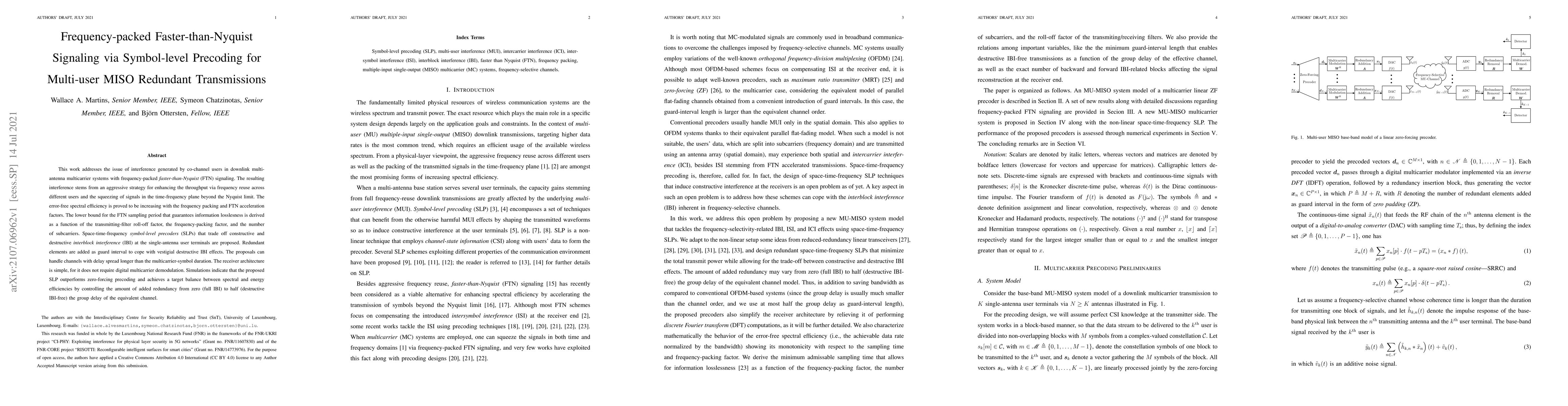 This research introduces Space-time-frequency symbol-level precoders (SLPs) to manage interference in multi-antenna multicarrier systems using faster-than-Nyquist (FTN) signaling. The method optimizes spectral and energy efficiency, handling long delay spread channels without complex digital demodulation, and outperforming zero-forcing precoding in simulations.