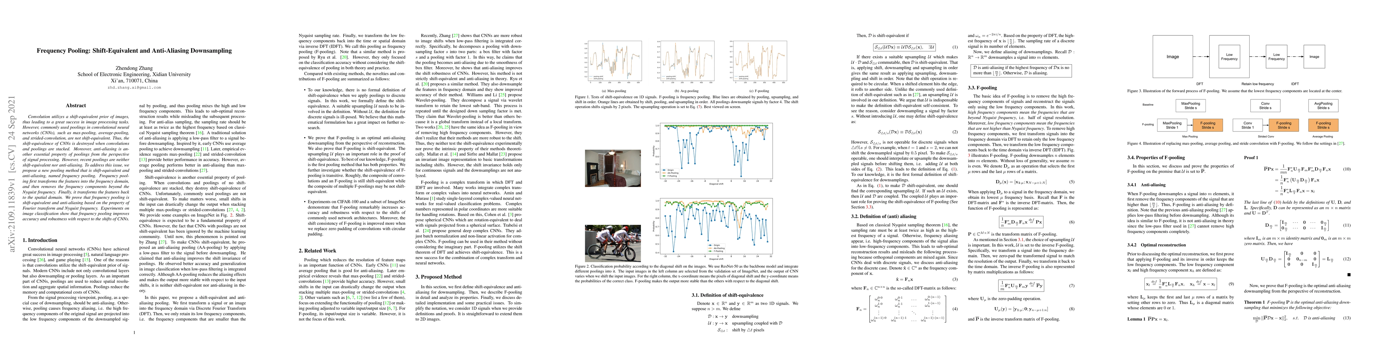 The paper proposes a new frequency pooling method that maintains shift-equivalence and anti-aliasing properties in convolutional neural networks, addressing limitations of existing pooling techniques. Frequency pooling transforms features into the frequency domain, removes high-frequency components, and returns them to the spatial domain, enhancing CNN accuracy and robustness.