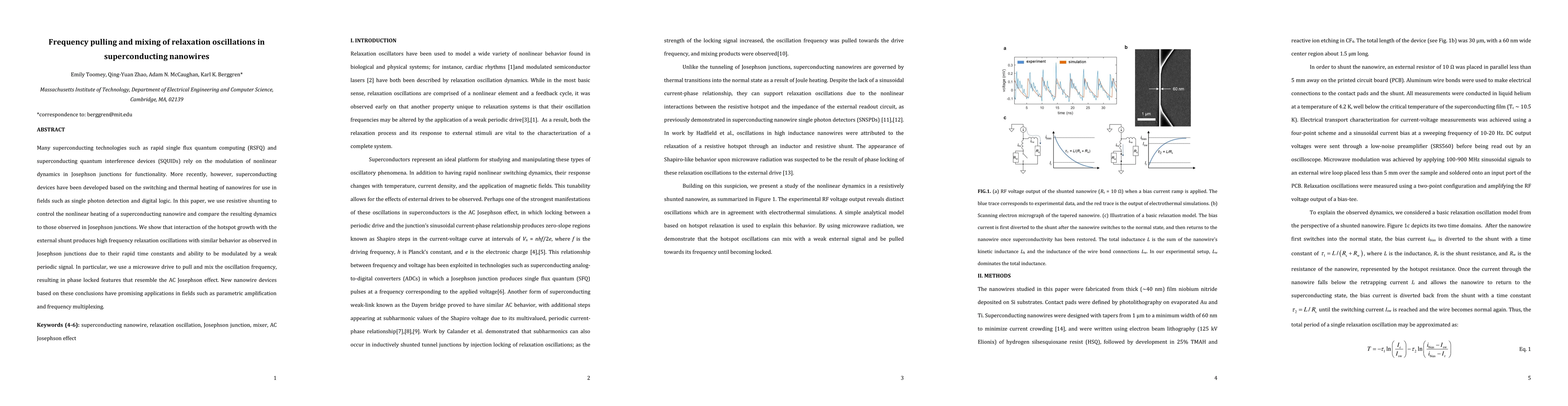 This paper explores the modulation of nonlinear dynamics in superconducting nanowires using resistive shunting, demonstrating high-frequency relaxation oscillations similar to those in Josephson junctions. Microwave drives are used to pull and mix the oscillation frequency, showing potential for applications in parametric amplification and frequency multiplexing.