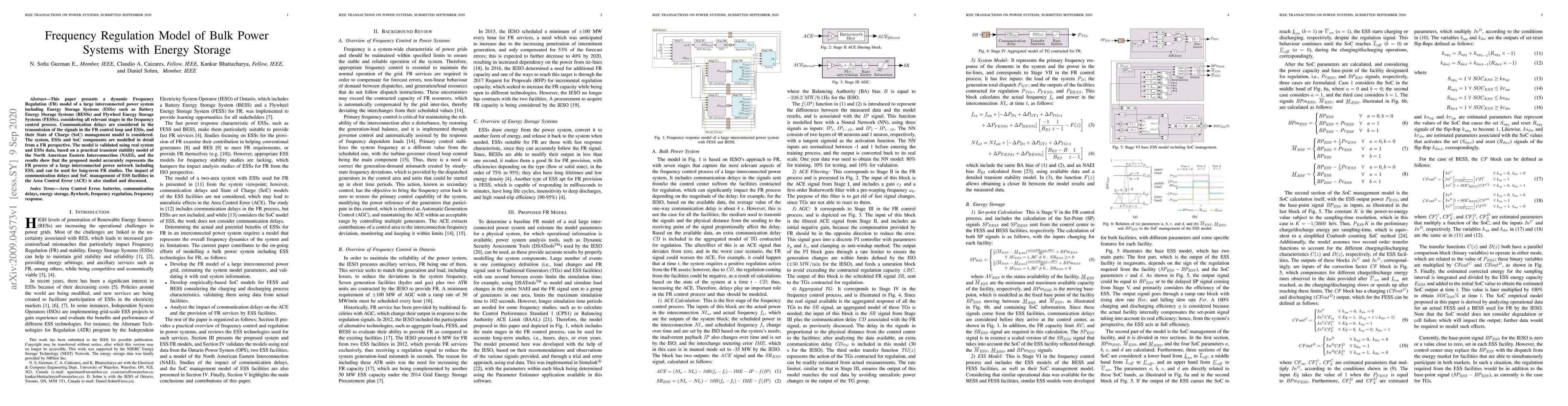 This paper develops a dynamic Frequency Regulation model for large interconnected power systems incorporating Energy Storage Systems, considering communication delays and State of Charge management. The model is validated using real data and demonstrates accurate representation of the FR process, highlighting the impact of ESSs on Area Control Error.