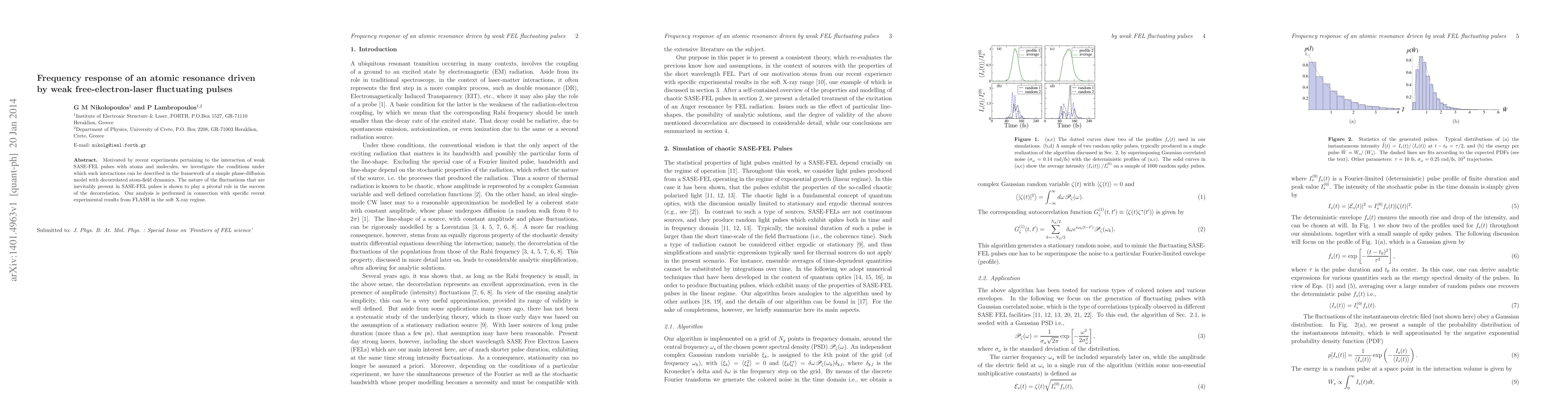Researchers investigate how atomic resonance is driven by weak free-electron laser pulses with fluctuating dynamics, finding that fluctuations play a key role in the interaction's success.