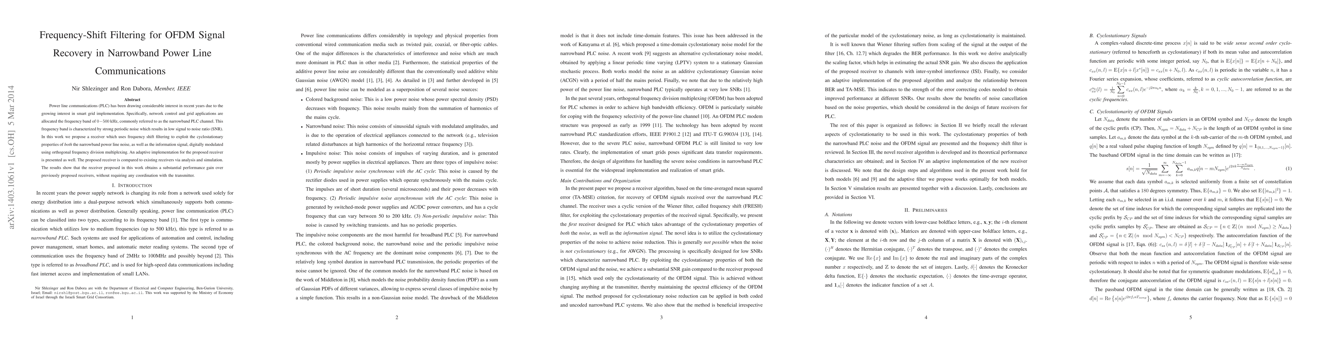 Researchers propose a receiver that uses frequency shift filtering to improve signal recovery in narrowband power line communications, achieving substantial performance gains without transmitter coordination.