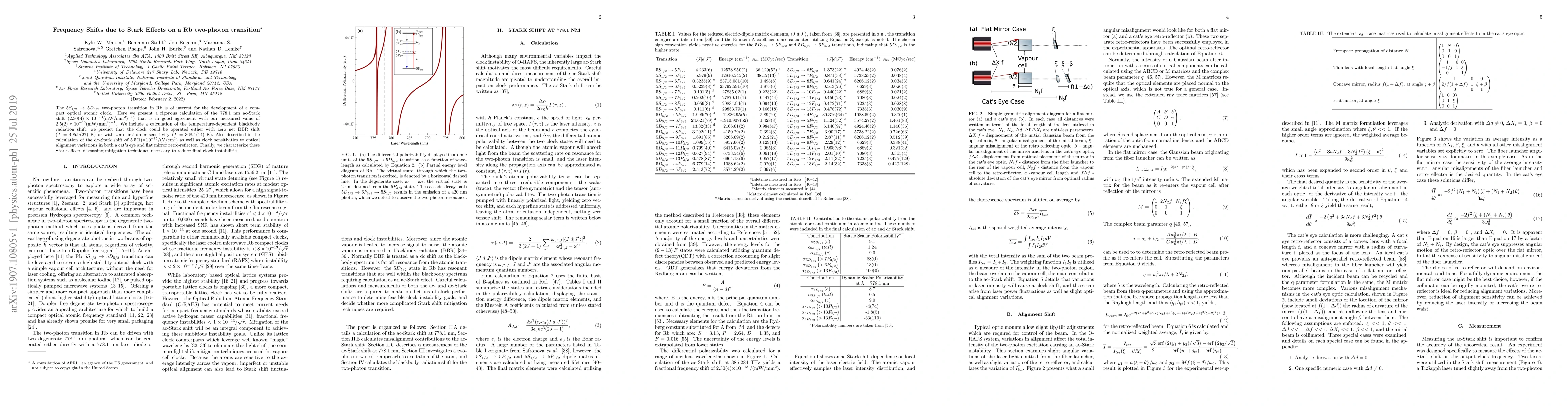 Researchers calculated the Stark shift in a rubidium two-photon transition for an optical atomic clock, finding a value of 2.30(4) x 10^-13 (mW/mm^2)^-1, with potential mitigation techniques to reduce final clock instabilities.