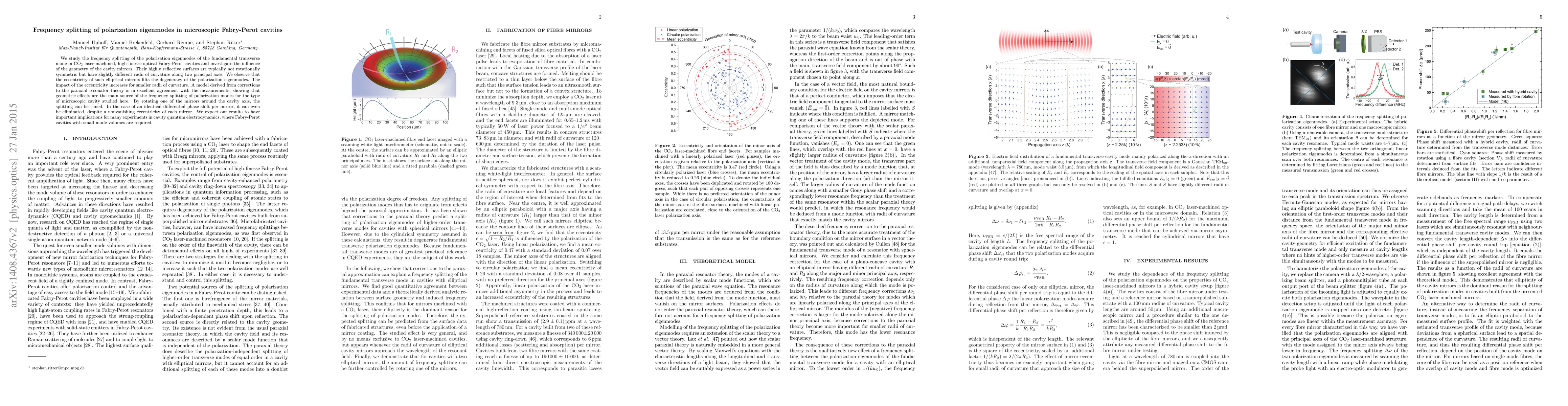 We study the frequency splitting of the polarization eigenmodes of the fundamental transverse mode in CO2 laser-machined, high-finesse optical Fabry-Perot cavities and investigate the influence of the geometry of the cavity mirrors. Their highly reflective surfaces are typically not rotationally symmetric but have slightly different radii of curvature along two principal axes. We observe that the eccentricity of such elliptical mirrors lifts the degeneracy of the polarization eigenmodes. The impact of the eccentricity increases for smaller radii of curvature. A model derived from corrections to the paraxial resonator theory is in excellent agreement with the measurements, showing that geometric effects are the main source of the frequency splitting of polarization modes for the type of microscopic cavity studied here. By rotating one of the mirrors around the cavity axis, the splitting can be tuned. In the case of an identical differential phase shift per mirror, it can even be eliminated, despite a nonvanishing eccentricity of each mirror. We expect our results to have important implications for many experiments in cavity quantum electrodynamics, where Fabry-Perot cavities with small mode volumes are required.