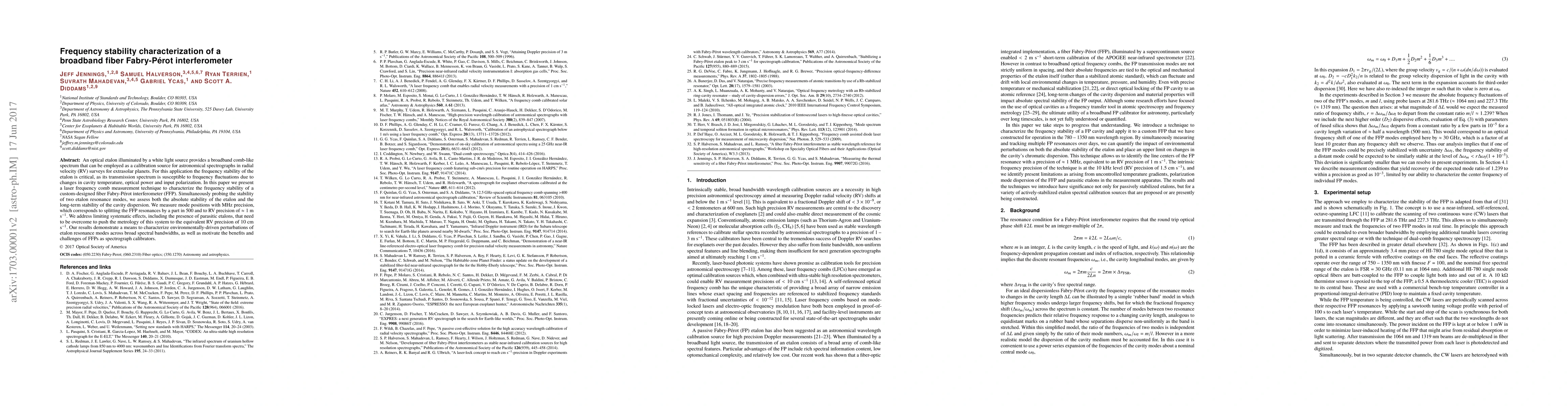 This paper presents a laser frequency comb technique for characterizing the frequency stability of a broadband fiber Fabry-Perot interferometer, crucial for calibrating astronomical spectrographs in radial velocity surveys. The study assesses both absolute and long-term stability, achieving MHz precision and demonstrating the potential for RV precision down to 10 cm/s.