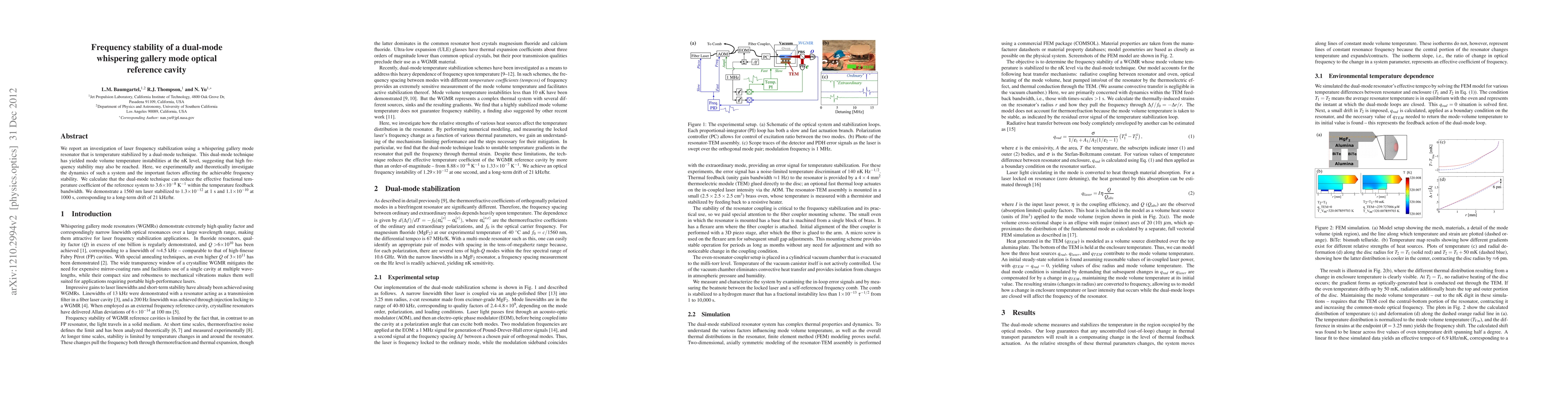 We report an investigation of laser frequency stabilization using a whispering gallery mode resonator that is temperature stabilized by a dual-mode technique. This dual-mode technique has yielded mode volume temperature instabilities at the nK level, suggesting that high frequency stability may also be reached. Here, we experimentally and theoretically investigate the dynamics of such a system and the important factors affecting the achievable frequency stability. We calculate that the dual-mode technique can reduce the effective fractional temperature coefficient of the reference system to 3.6x10^-8 K^-1 within the temperature feedback bandwidth. We demonstrate a 1560 nm laser stabilized to 1.3x10^-12 at 1 s and 1.1x10^-10 at 1000 s, corresponding to a long-term drift of 21 kHz/hr.