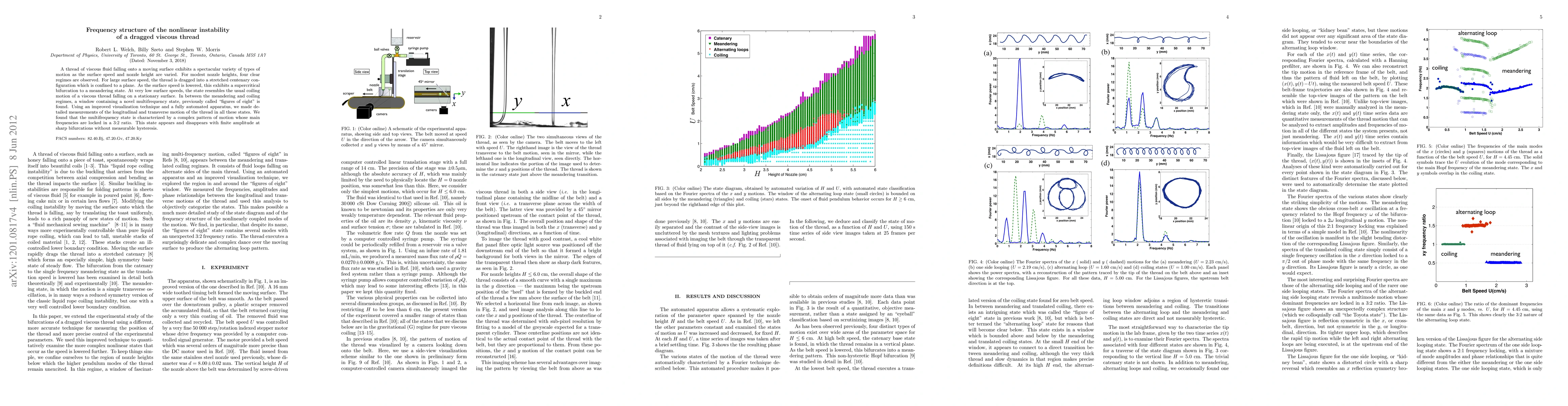 This study investigates the nonlinear instability of a dragged viscous thread, revealing four distinct motion regimes based on surface speed and nozzle height. The multifrequency "figures of eight" state, characterized by a 3:2 frequency ratio, emerges between the meandering and coiling states, appearing sharply without hysteresis.