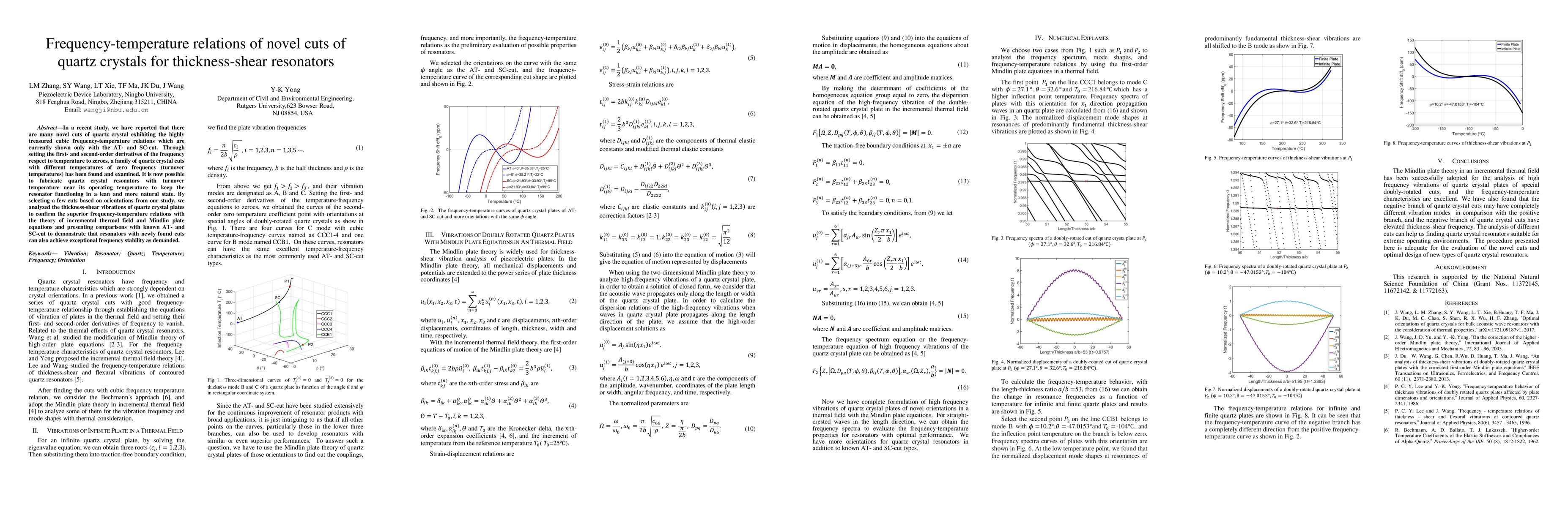 In a recent study, we have reported that there are many novel cuts of quartz crystal exhibiting the highly treasured cubic frequency-temperature relations which are currently shown only with the AT- and SC-cut. Through setting the first- and second-order derivatives of the frequency respect to temperature to zeroes, a family of quartz crystal cuts with different temperatures of zero frequency (turnover temperatures) has been found and examined. It is now possible to fabricate quartz crystal resonators with turnover temperature near its operating temperature to keep the resonator functioning in a lean and more natural state. By selecting a few cuts based on orientations from our study, we analyzed the thickness-shear vibrations of quartz crystal plates to confirm the superior frequency-temperature relations with the theory of incremental thermal field and Mindlin plate equations and presenting comparisons with known AT- and SC-cut to demonstrate that resonators with newly found cuts can also achieve exceptional frequency stability as demanded.