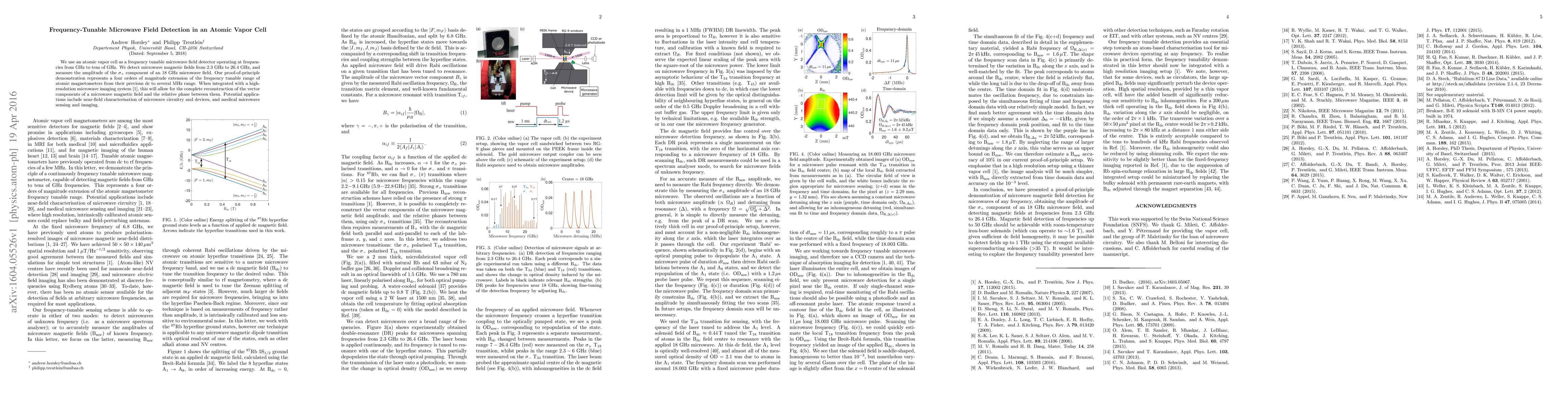 This paper demonstrates a frequency-tunable microwave field detector using an atomic vapor cell, extending the detection range from MHz to tens of GHz. The system can reconstruct the vector components and relative phase of microwave magnetic fields, with potential applications in microwave circuitry analysis and medical imaging.