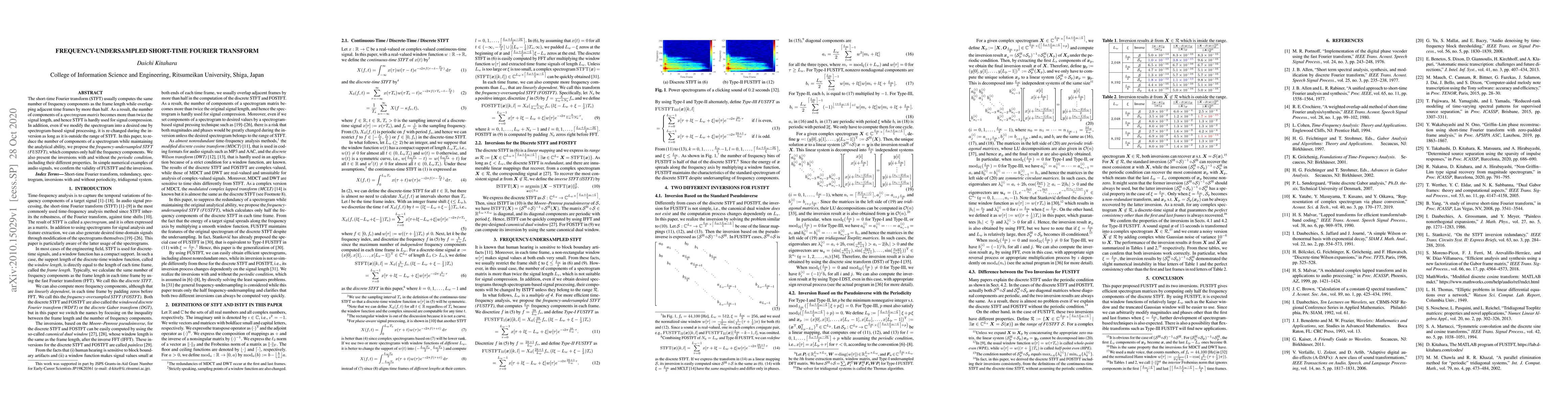 The paper proposes the frequency-undersampled short-time Fourier transform (FUSTFT) to reduce the number of frequency components in the spectrogram, thus enabling better signal compression while maintaining analytical ability. The FUSTFT computes only half the frequency components, and the paper discusses its inversion methods and properties, validated through audio signal examples.