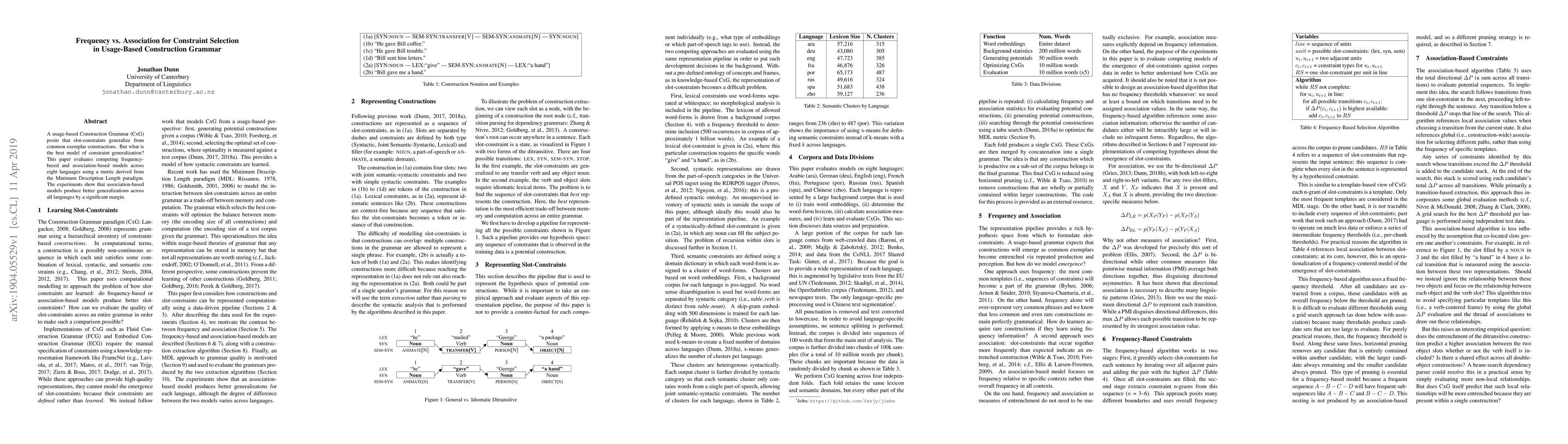 A usage-based Construction Grammar (CxG) posits that slot-constraints generalize from common exemplar constructions. But what is the best model of constraint generalization? This paper evaluates competing frequency-based and association-based models across eight languages using a metric derived from the Minimum Description Length paradigm. The experiments show that association-based models produce better generalizations across all languages by a significant margin.