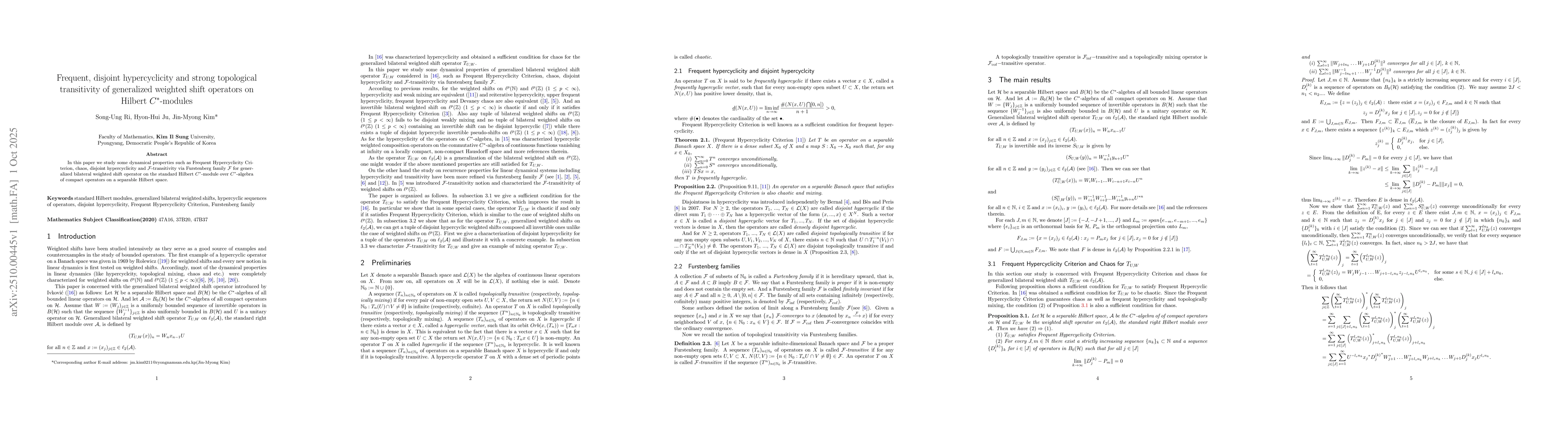 The research employs a combination of functional analysis techniques, including the study of weighted shifts on Hilbert spaces, disjoint hypercyclicity, and Furstenberg families to analyze the dynamics of operators. It utilizes operator theory, sequence spaces, and topological methods to establish conditions for transitivity and mixing properties.