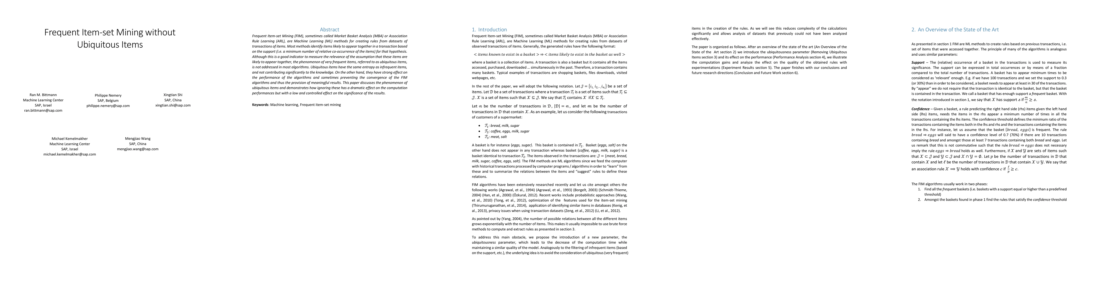 This paper explores the issue of ubiquitous items in Frequent Item-set Mining (FIM) and demonstrates that ignoring these very frequent items can significantly improve algorithm performance while minimally affecting the significance of the results. It addresses the challenges posed by ubiquitous items in FIM algorithms.