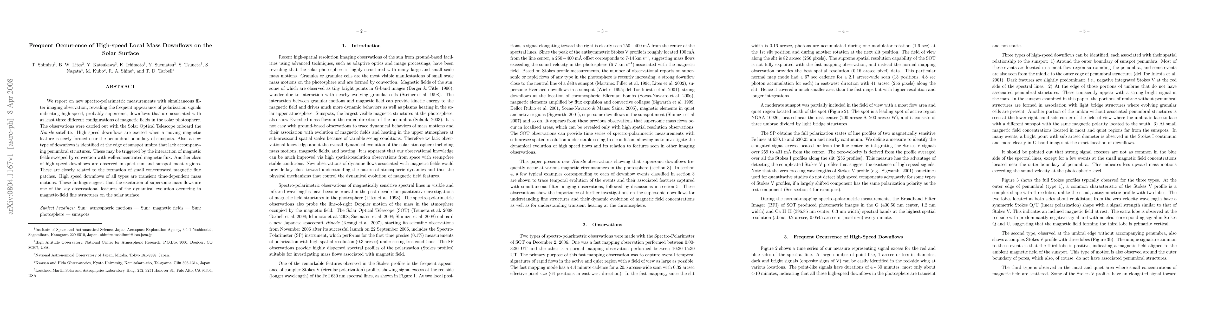 This paper reports on frequent high-speed downflows on the solar surface, detected via spectro-polarimetric measurements and filter imaging from the Hinode satellite. These transient, supersonic downflows are linked to various magnetic field configurations and sunspot dynamics.